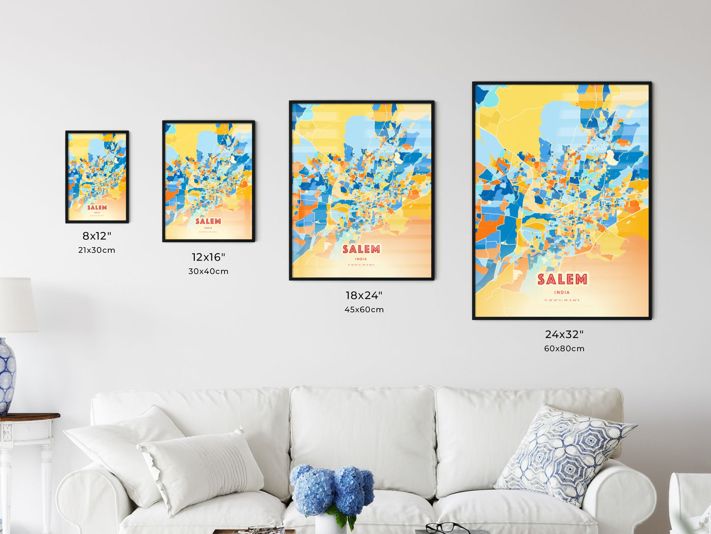 Colorful SALEM INDIA Fine Art Map Poster | Customizable