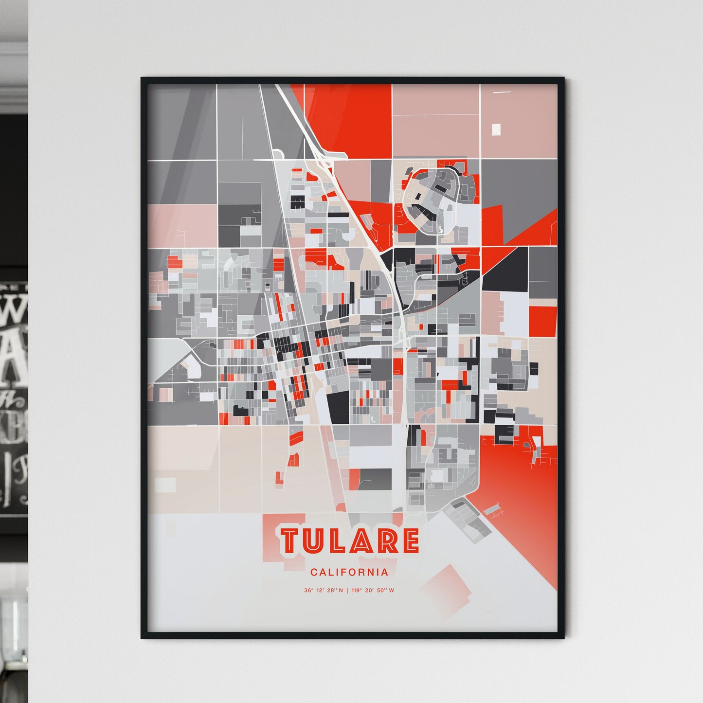 Colorful Tulare California Fine Art Map Poster | Customizable