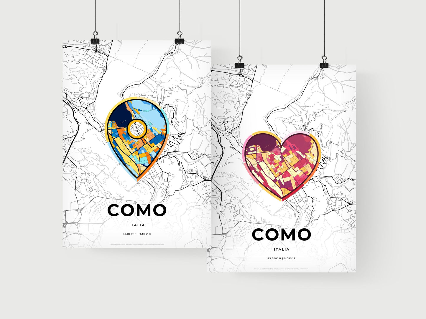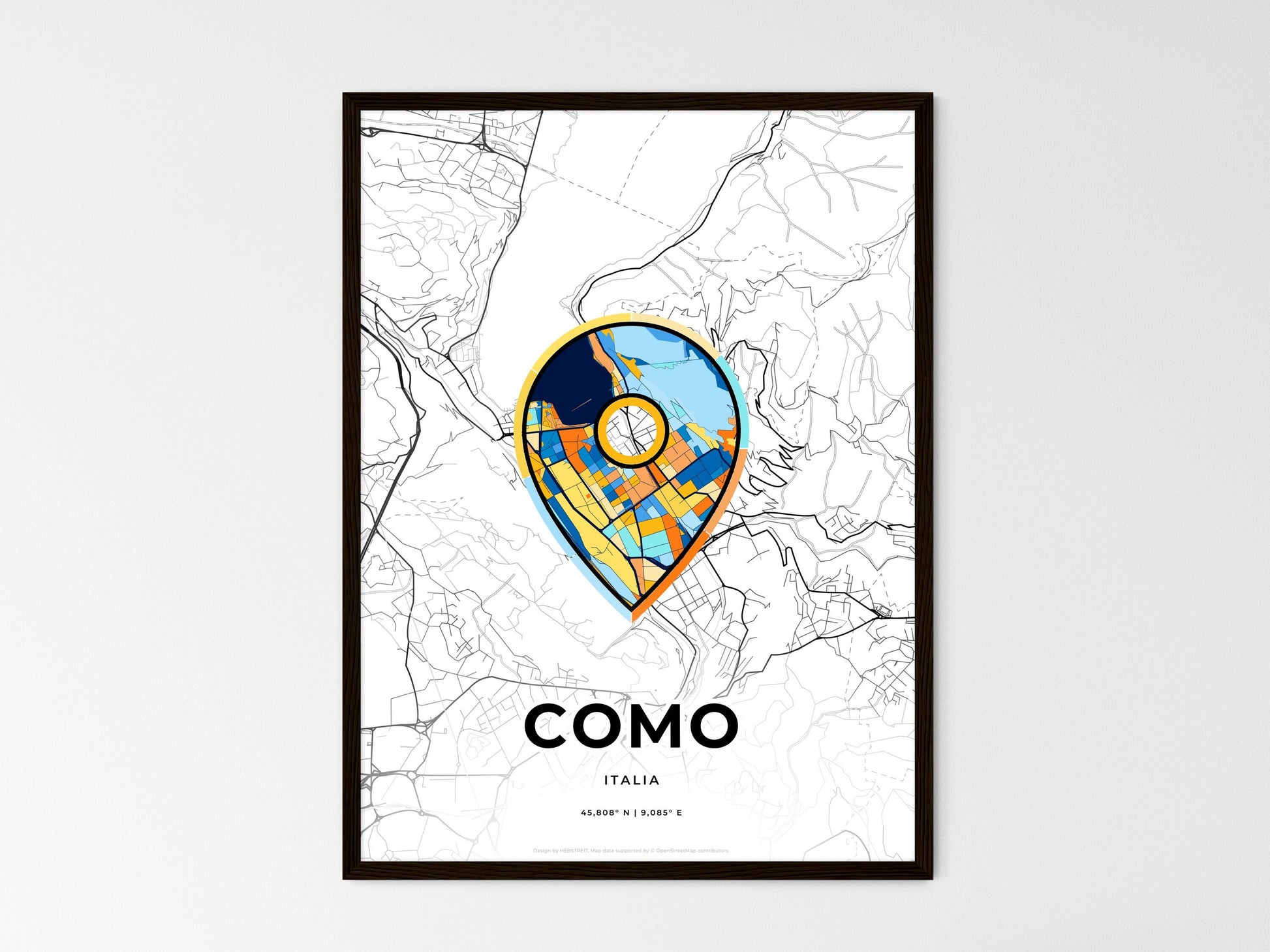 Como Italy, minimal art map with a colorful icon