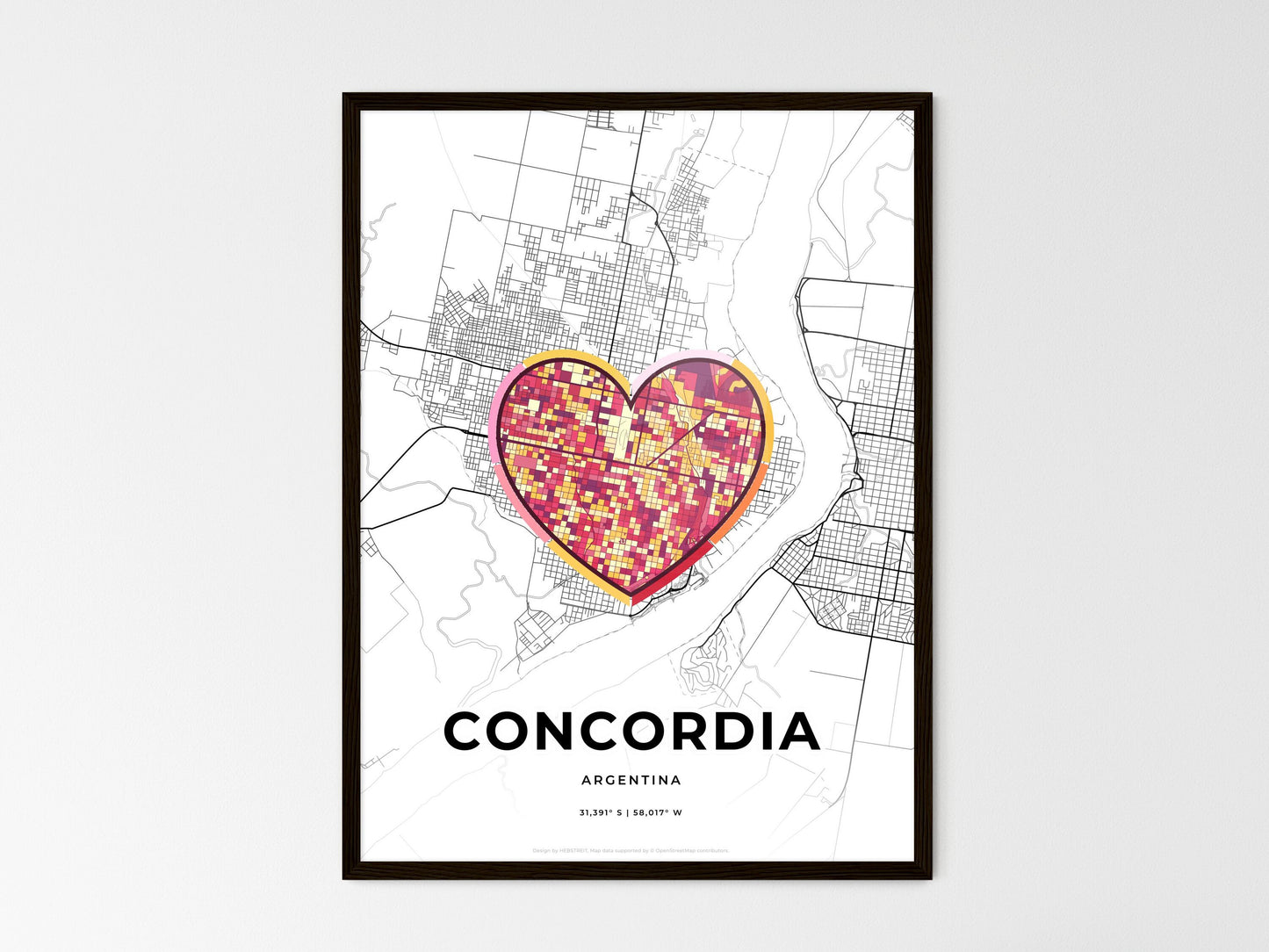 Our map of Concordia Argentina shows minimalist designed roads, railroads and waterways combined with colorful urban areas within one icon.