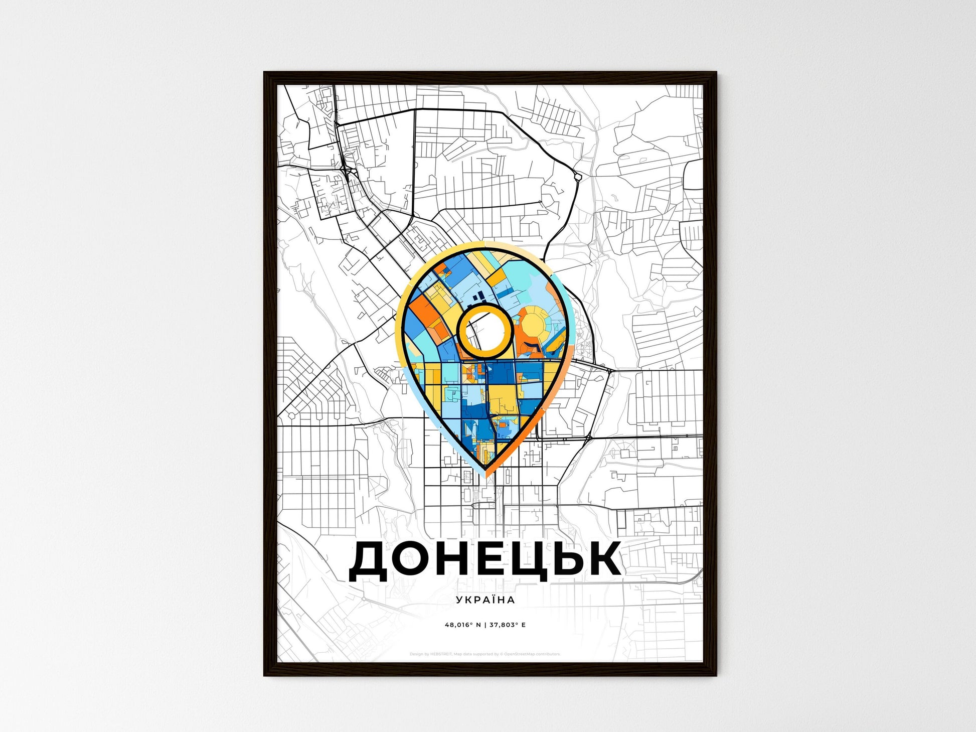 Donetsk, Ukraine, a city with a rich history, is immortalized in this vibrant abstract print. The intricate map design evokes the beauty and complexity of this urban center, while the colorful icon symbolizes the vibrant spirit of its people. From its industrial roots to its cultural heritage, Donetsk has played a significant role in the development of Ukraine. This print serves as a unique tribute to a city that has witnessed both triumph and adversity, capturing the essence of its spirit and the enduring bonds it fosters. Whether as a gift or a cherished addition to your own decor, this artwork embodies the captivating charm of Donetsk, inviting you to explore its hidden depths and celebrate its unique story.
