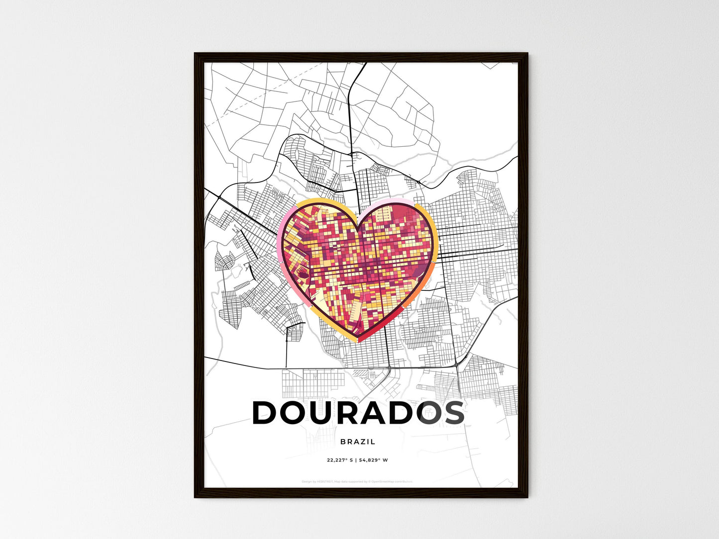 Step into the vibrant city of Dourados, Brazil, where the fusion of art and geography unfolds in this captivating print. This minimal art map showcases the city's essence with a focus on its artistic allure. Dourados stands as a hub of creativity, where street art adorns walls and galleries exhibit local talent. Discover the hidden gems of this thriving metropolis, from its bustling markets to serene parks, all captured in this abstract illustration that celebrates the unique identity of Dourados. Let this colorful icon adorn your walls and transport you to the heart of this vibrant Brazilian city, a testament to its rich heritage and artistic spirit.