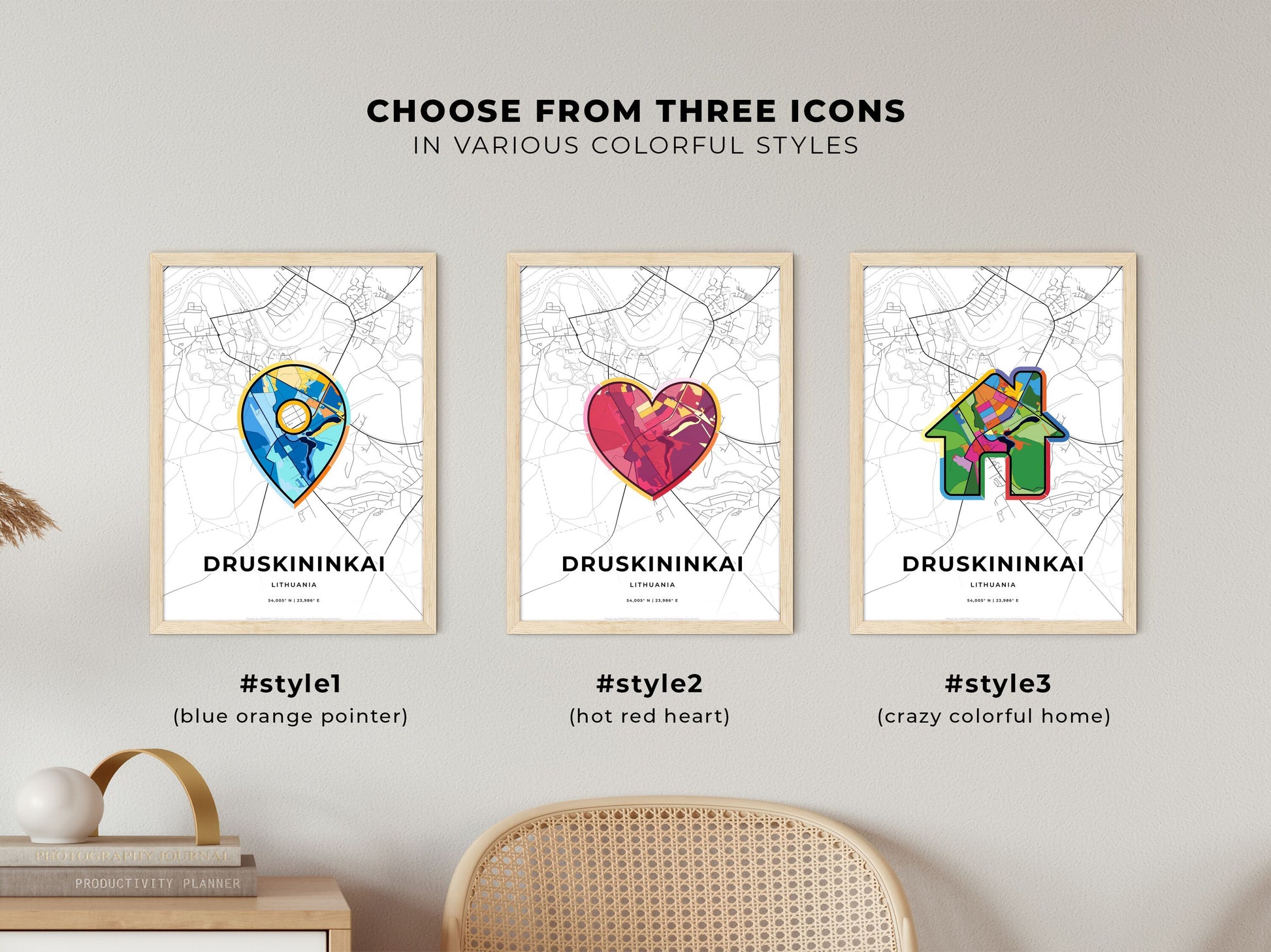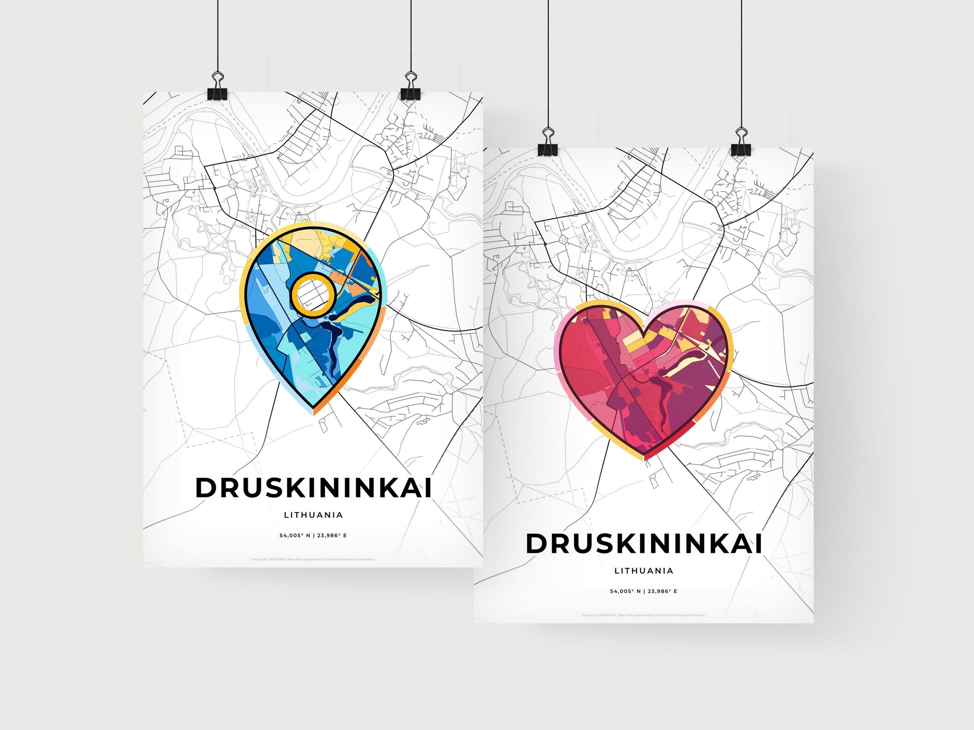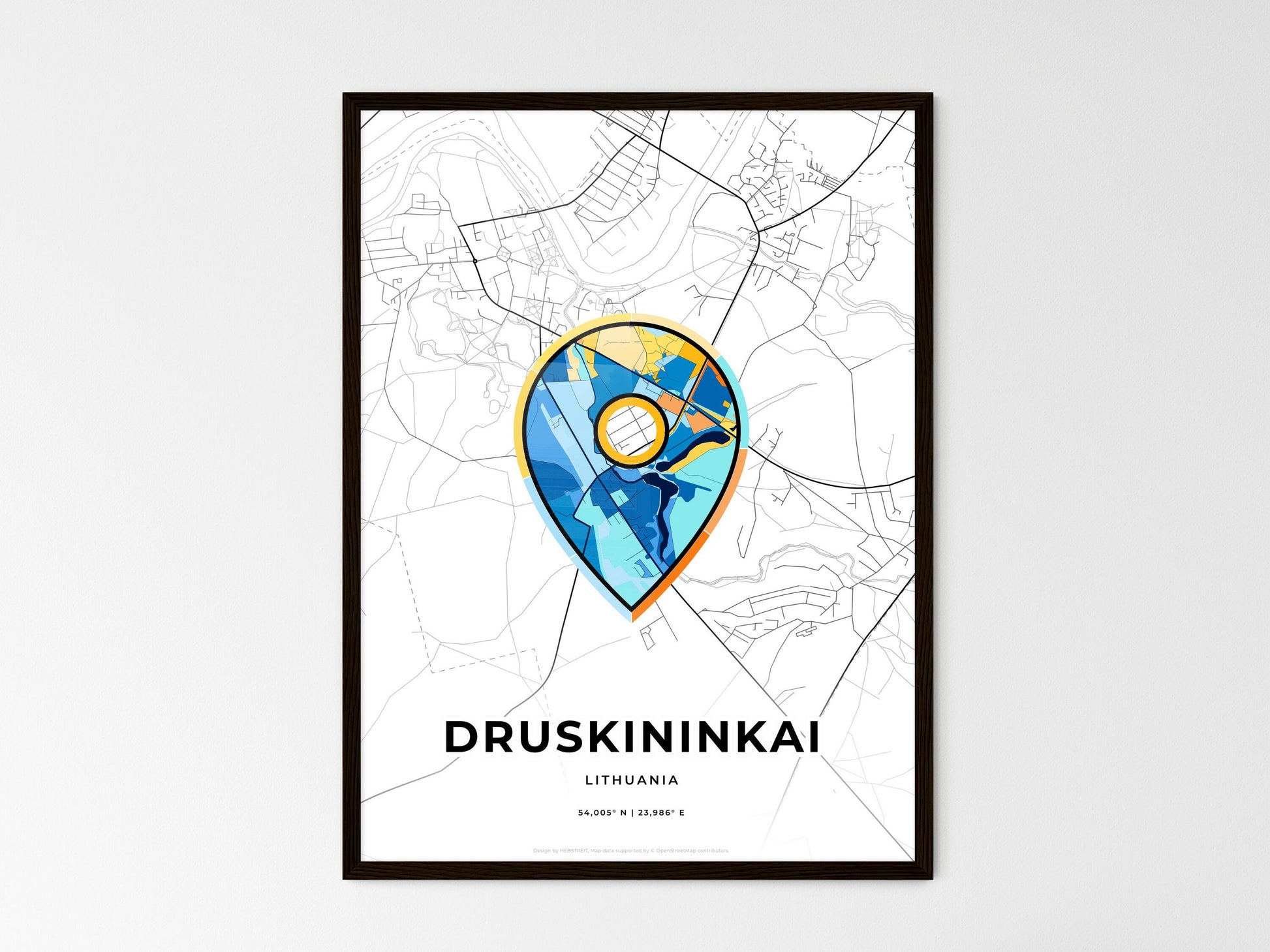 Druskininkai Lithuania, minimal art map with a colorful icon