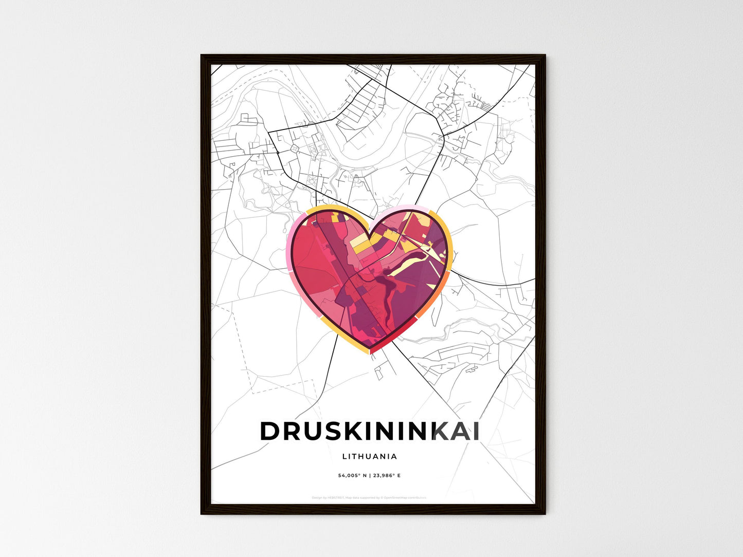 Unveil the charm of Druskininkai, Lithuania, with this captivating minimalist art map. Druskininkai, nestled in the heart of southern Lithuania, is renowned for its picturesque landscapes, historic architecture, and therapeutic mineral springs. This vibrant map art captures the essence of this enchanting city, highlighting its landmarks and natural wonders with a splash of colorful icons. Whether you've had the pleasure of experiencing the allure of Druskininkai firsthand or hold a special connection to its streets, this print serves as a perfect reminder or a unique gift for those who cherish this remarkable destination. Enhance your interior with this stunning artwork, letting the spirit of Druskininkai inspire your daily life.