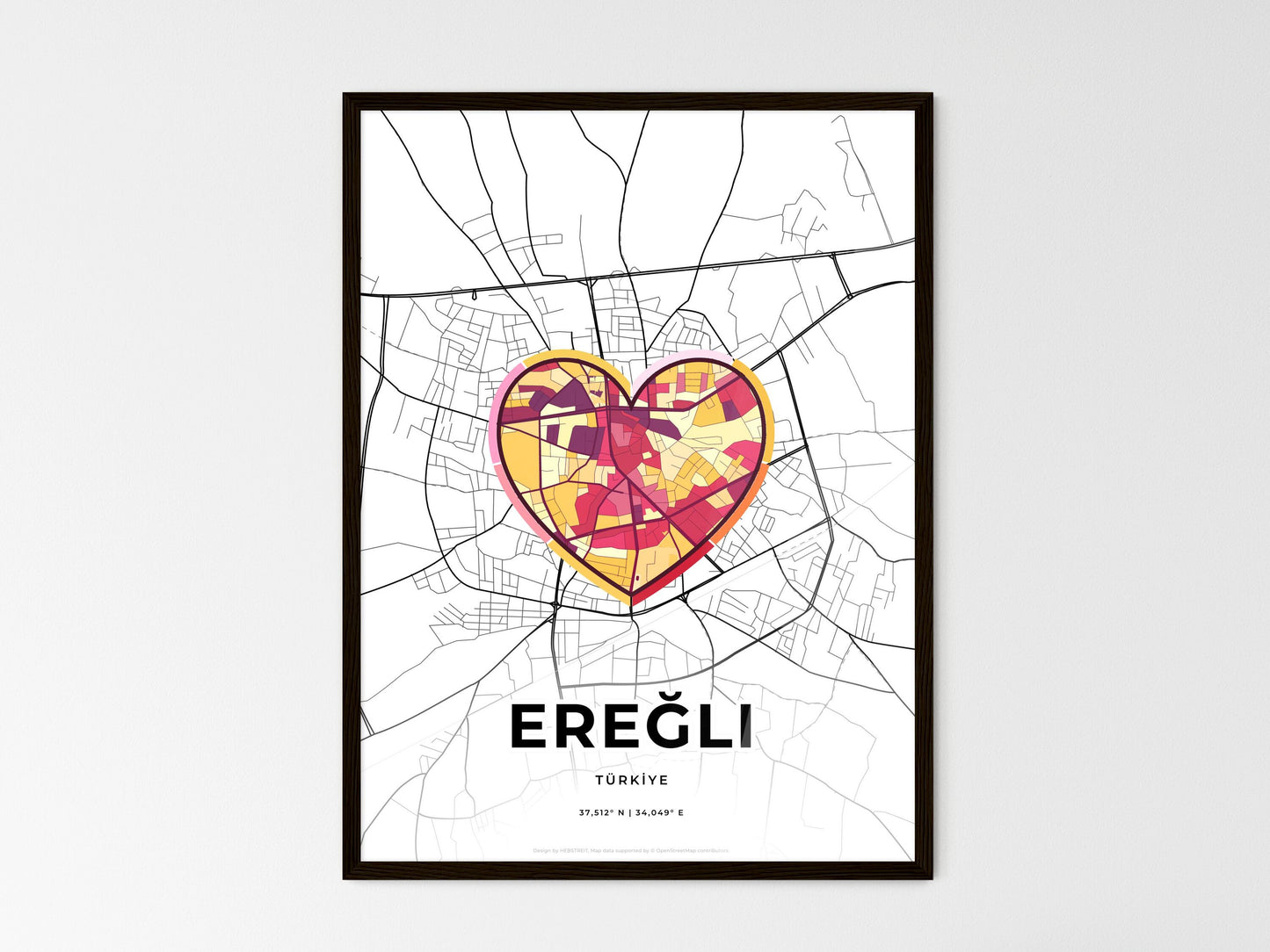 Embark on a journey to the vibrant city of Eregli, Turkey, captured in this captivating minimal art map. With an abstract touch, this print highlights the city's allure through its colorful iconography. Its geometric lines and vibrant hues evoke a sense of place and history. Originally known as Arpiphilum, Eregli boasts a rich heritage dating back to ancient Greek times. Immerse yourself in its charm as you explore the city's enigmatic streets, bustling markets, and tranquil waterfront, where the Black Sea whispers tales of its past. This poster serves as a unique keepsake or an exquisite addition to any home decor, preserving a glimpse of Eregli's captivating essence.
