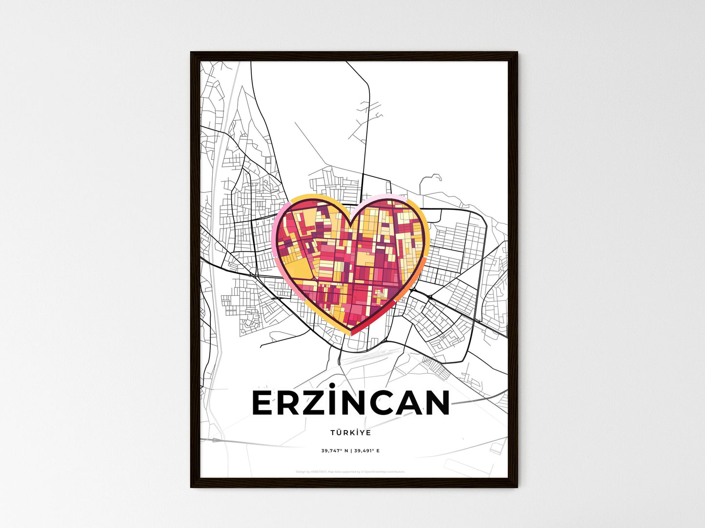 Introducing Erzican, a captivating city nestled in the heart of eastern Turkey. With its rich tapestry of history, Erzican boasts an enchanting blend of ancient and modern, where the past gracefully intertwines with the present. Immerse yourself in its vibrant streets, adorned with colorful buildings and bustling markets, each corner exuding a unique charm. Explore the iconic ruins of the medieval city of Kemah, a testament to the region's enduring heritage. As you wander through Erzican, be captivated by its vibrant and welcoming atmosphere, a true gem waiting to be discovered. Whether you're seeking a memorable gift for a cherished travel companion or a stunning addition to your home décor, this minimalist art map offers a perfect tribute to the allure of Erzican.