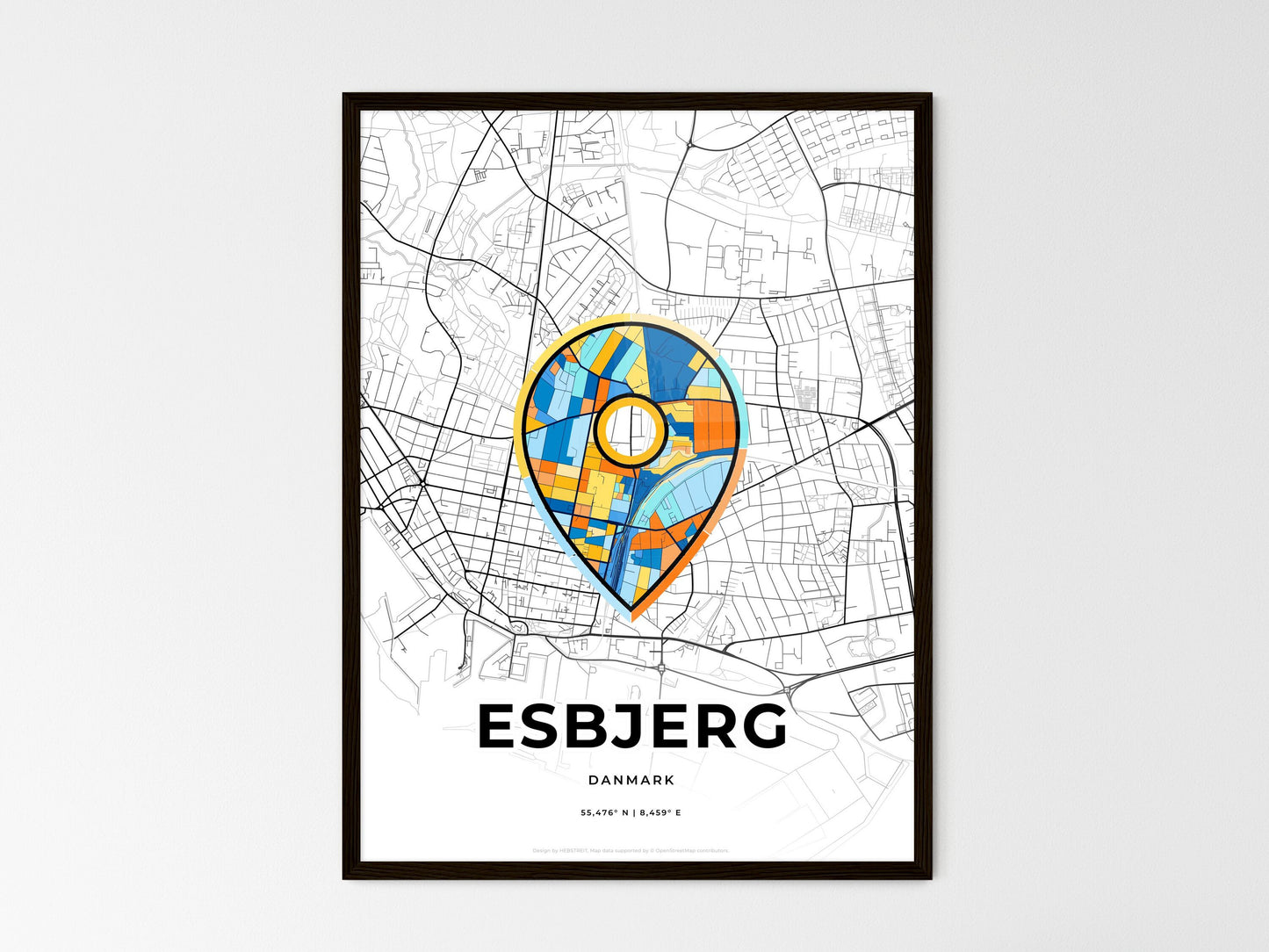 Esbjerg Denmark, minimal art map with a colorful icon
