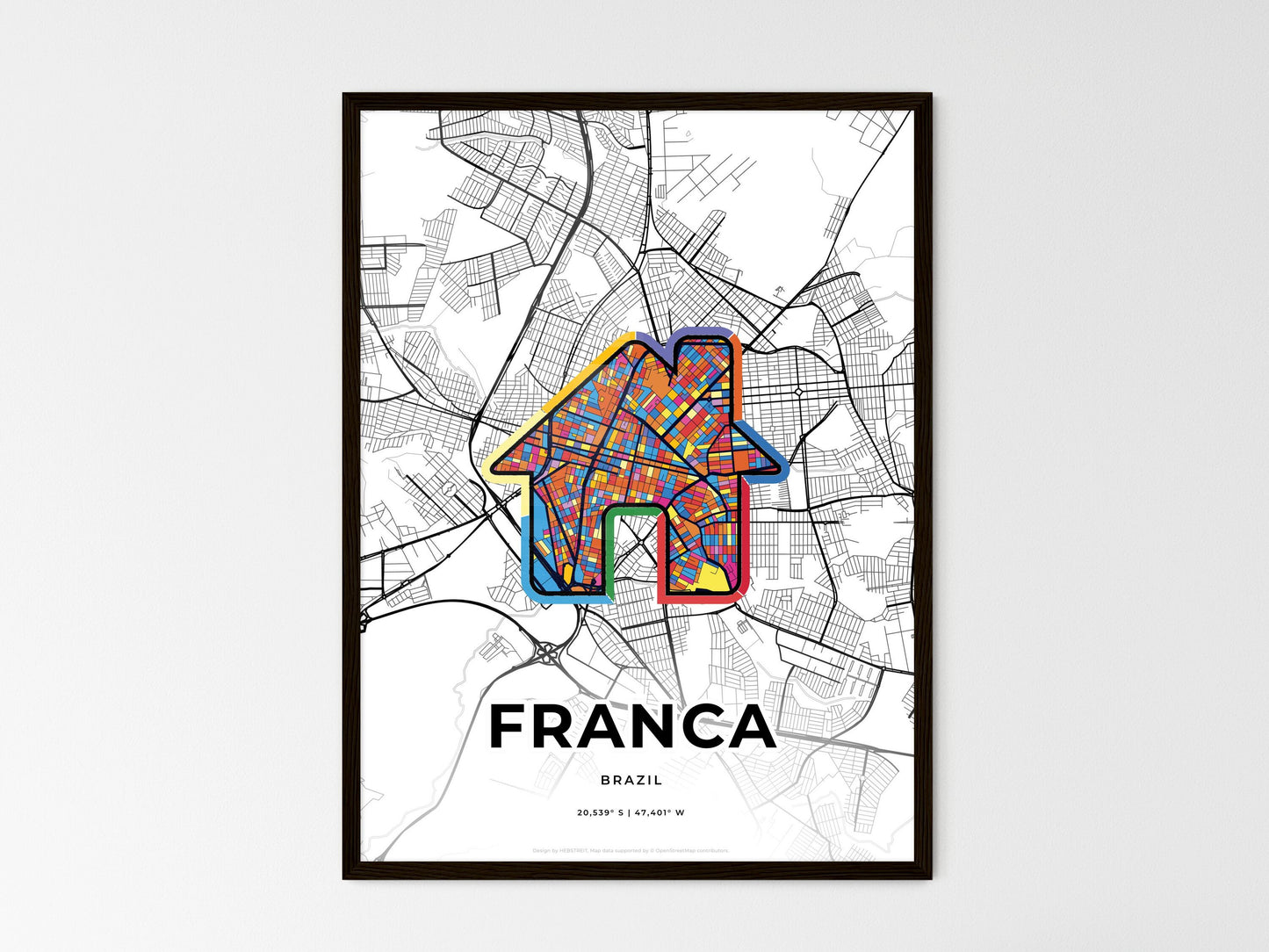 Discover the vibrant spirit of Franca, Brazil, through this exquisite minimal art map. Embellished with a colorful icon, this captivating print captures the essence of where it all began for this bustling city. Dive into the captivating history and alluring culture of Franca, known for its lively festivals, enchanting architecture, and thriving art scene. Immerse yourself in the city's vibrant atmosphere by ordering this unique map, perfect for gifting or enhancing your own interior design with a touch of Brazilian flair.