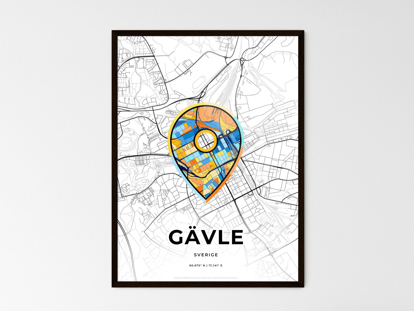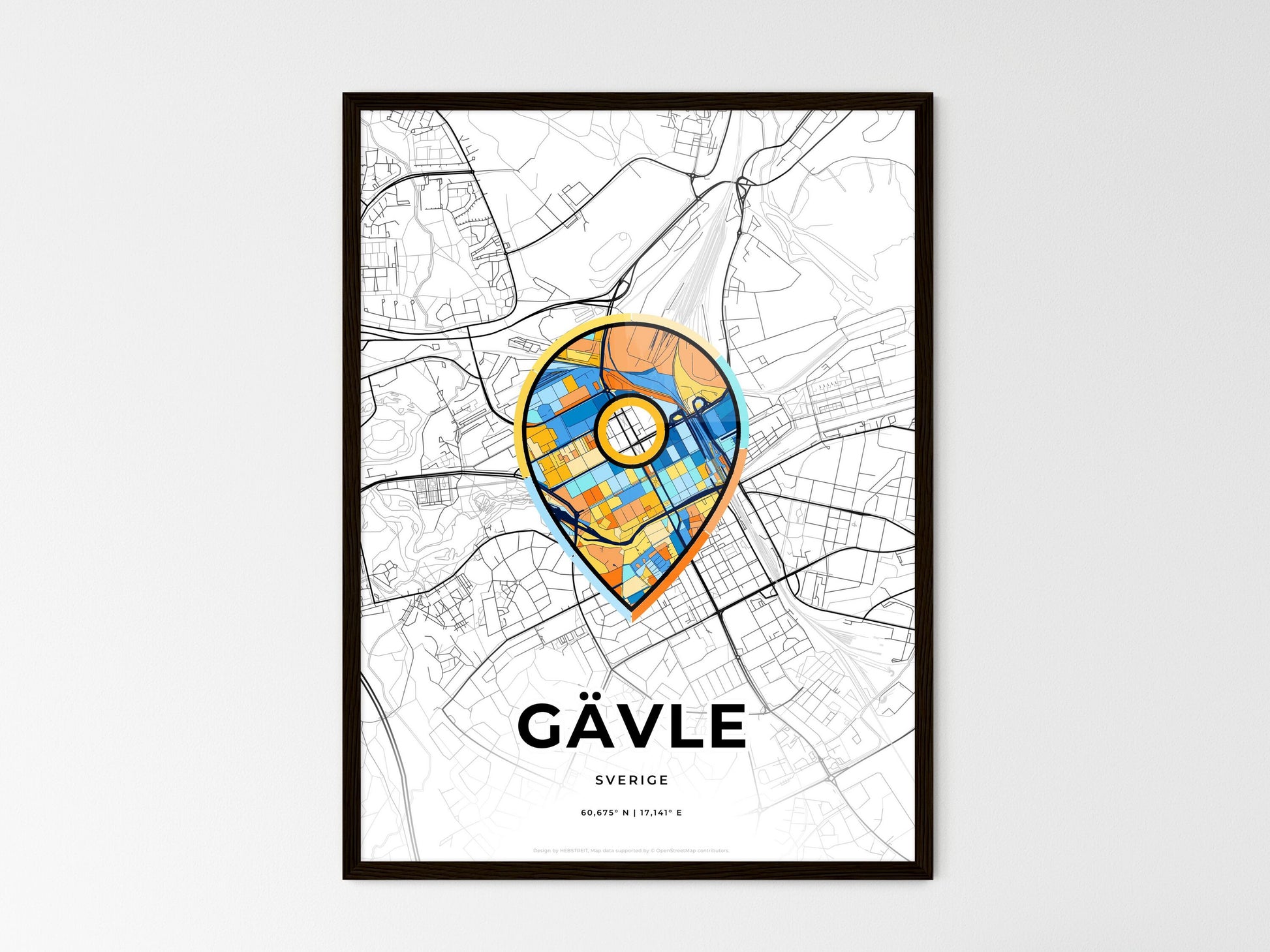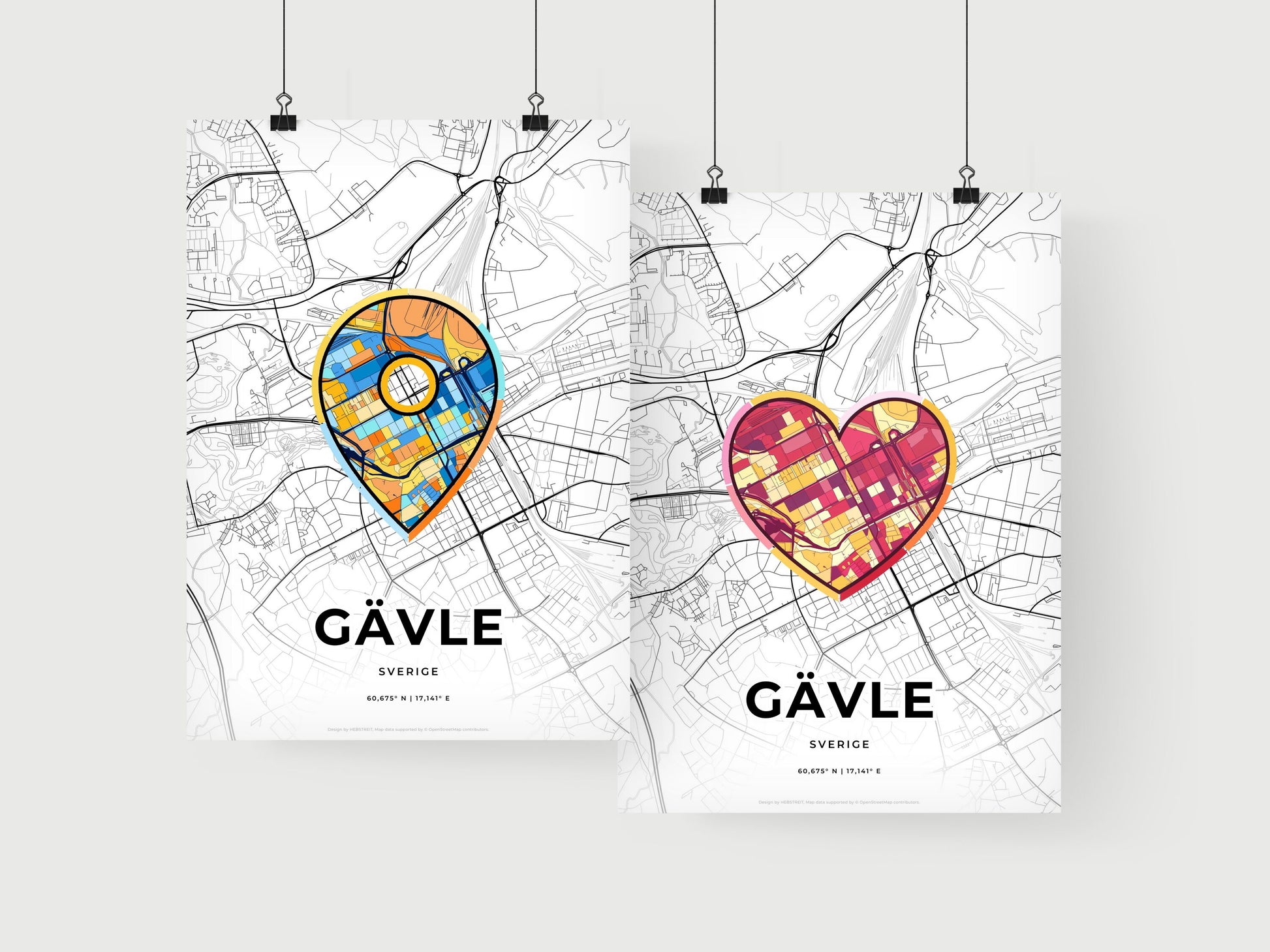 Our map of Gävle Sverige shows minimalist designed roads, railroads and waterways combined with colorful urban areas within one icon.