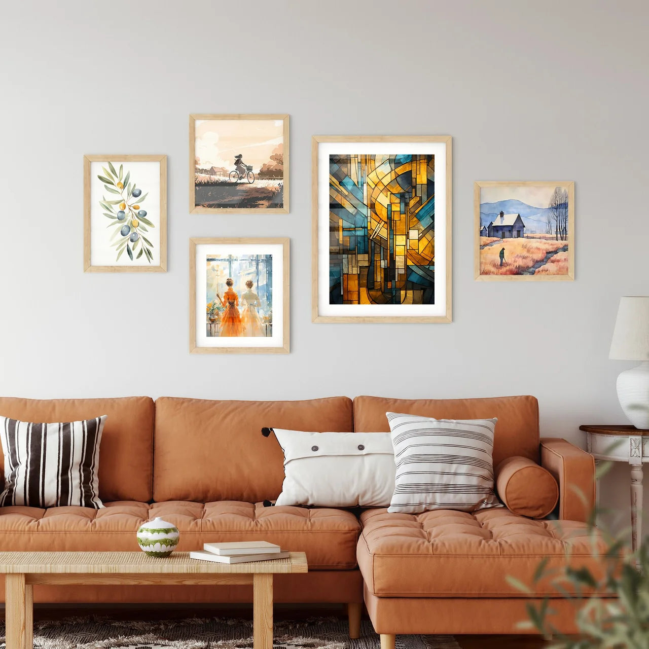 Introducing Geometric Ornament In Art Deco Style In Old Gold - A Stained Glass Window With Different Colors our premium ART Print that captures the playful spirit and vivid imagination of modern art. This eye-catching series consists of vibrant urban views, each designed with a bold and expressive color palette that adds a touch of color and energy to any space.