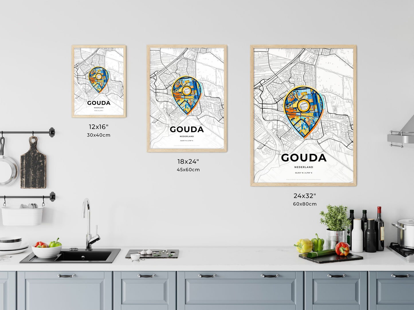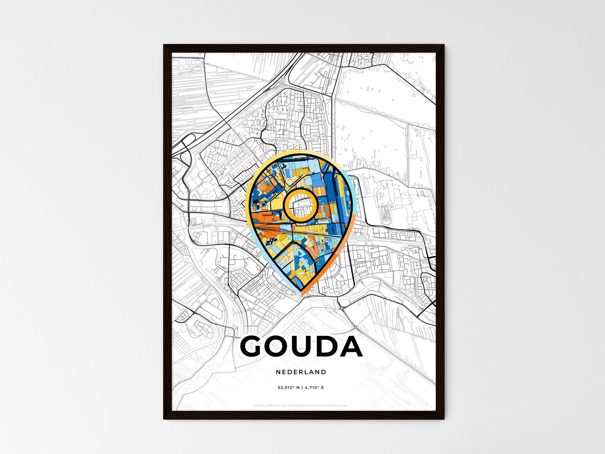 Gouda Netherlands, minimal art map with a colorful icon