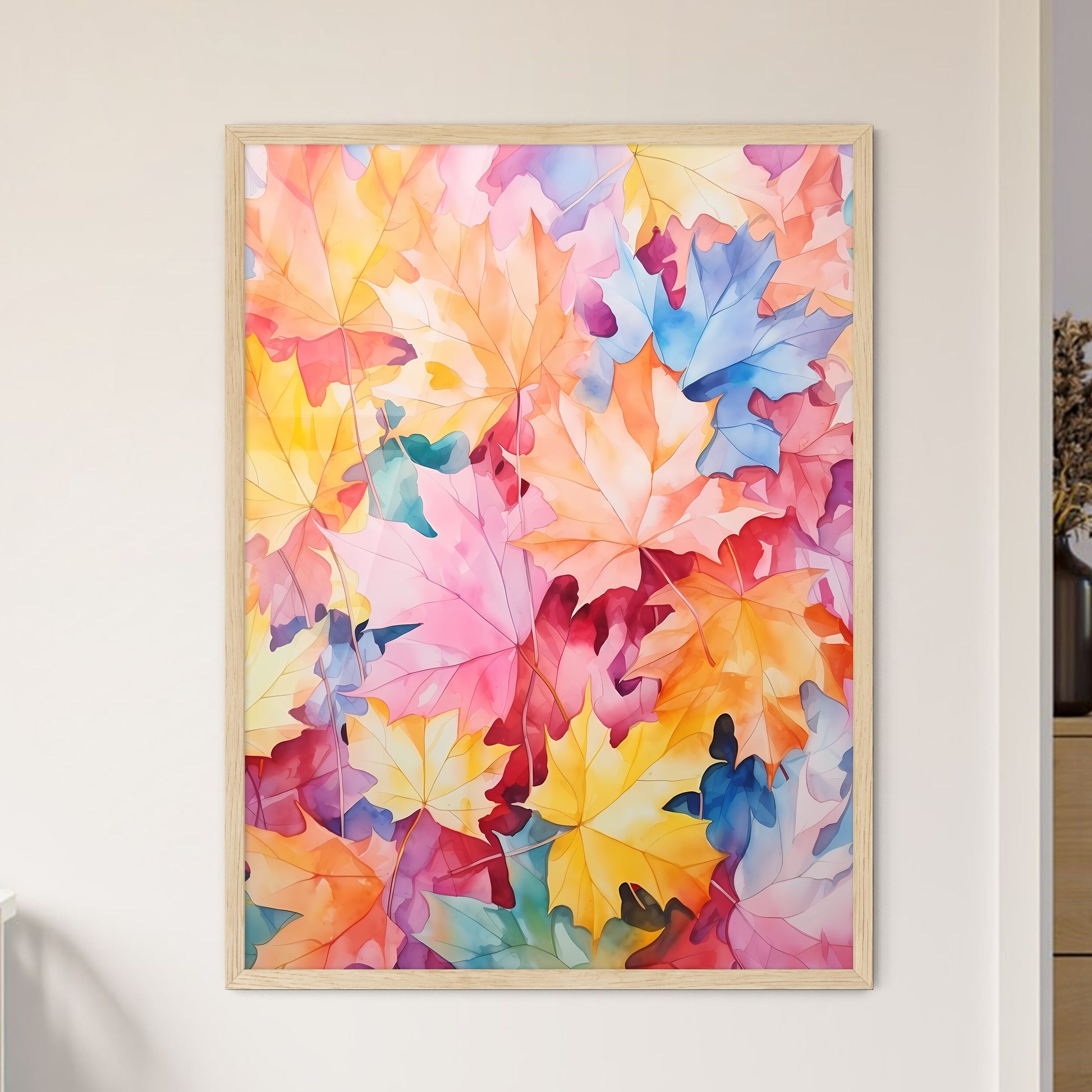 Capture the vibrant beauty of nature with this exquisite Group of Colorful Leaves Art Print. This stunning painting showcases a bold and expressive interpretation of autumn's kaleidoscope of colors. The artist's keen eye captures the intricate details of each leaf, creating a tapestry that evokes a sense of wonder and tranquility. Whether you're seeking a thoughtful gift for a loved one or adding a touch of artistry to your home décor, this art print will bring a burst of color and inspiration to any space.