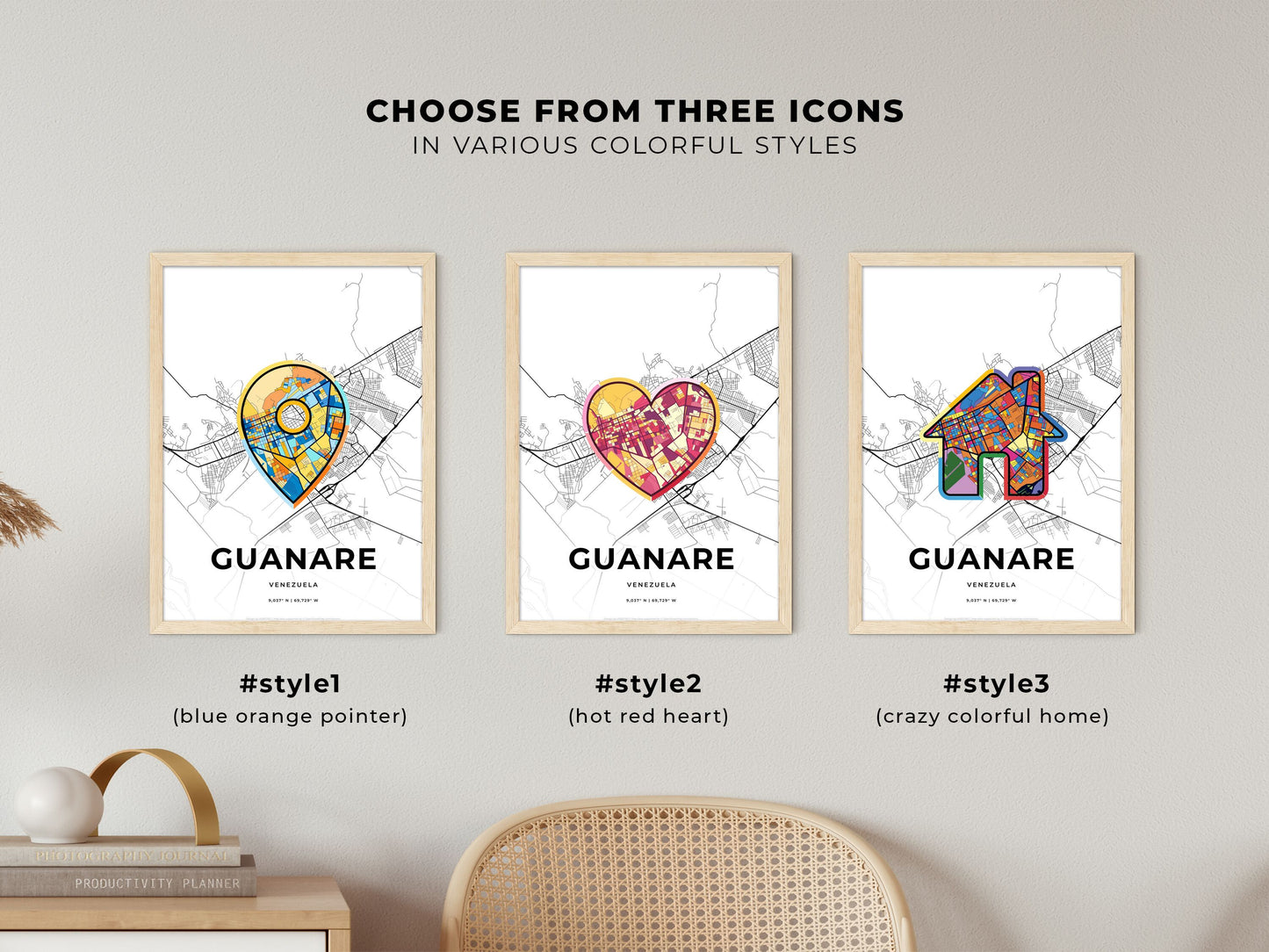 Step into the vibrant city of Guanare, Venezuela, where art and history intertwine. This abstract map poster depicts the city's essence with its colorful icon, inviting you to explore its unique charm. As the birthplace of renowned musicians and artists, Guanare pulsates with creativity. Wander through its historic streets, admire the architectural beauty, and soak up the lively atmosphere. The city's cultural heritage is woven into every corner, from the captivating museums to the vibrant street markets. Whether you're an art enthusiast, a history buff, or simply seeking a touch of Venezuelan flair for your home décor, this minimalist map print captures the spirit of Guanare in a captivating artwork.