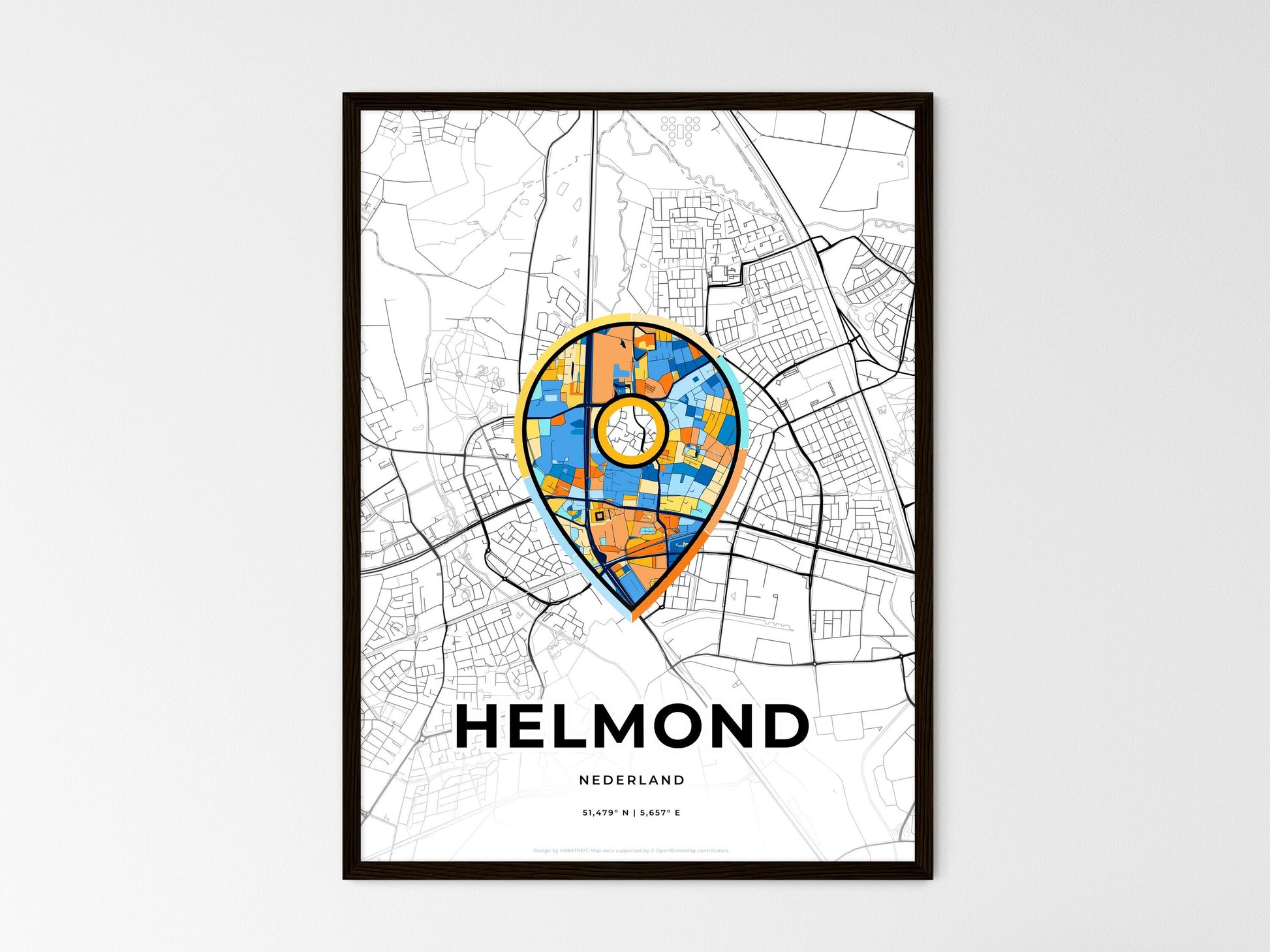 Discover the vibrant city of Helmond in the Netherlands, immortalized in this captivating abstract city map. This artwork captures the essence of Helmond's urban fabric, transforming it into a unique piece of art. The colorful icon symbolizes the city's vibrant personality, hinting at its rich history and modern flair. Stroll through the streets, explore hidden gems, and relive cherished memories as this print adorns your walls, reminding you of the unforgettable experiences that shaped this city and your life within it. Whether as a thoughtful gift or a treasured keepsake for your own home, this print is an ode to the beauty and spirit of Helmond.