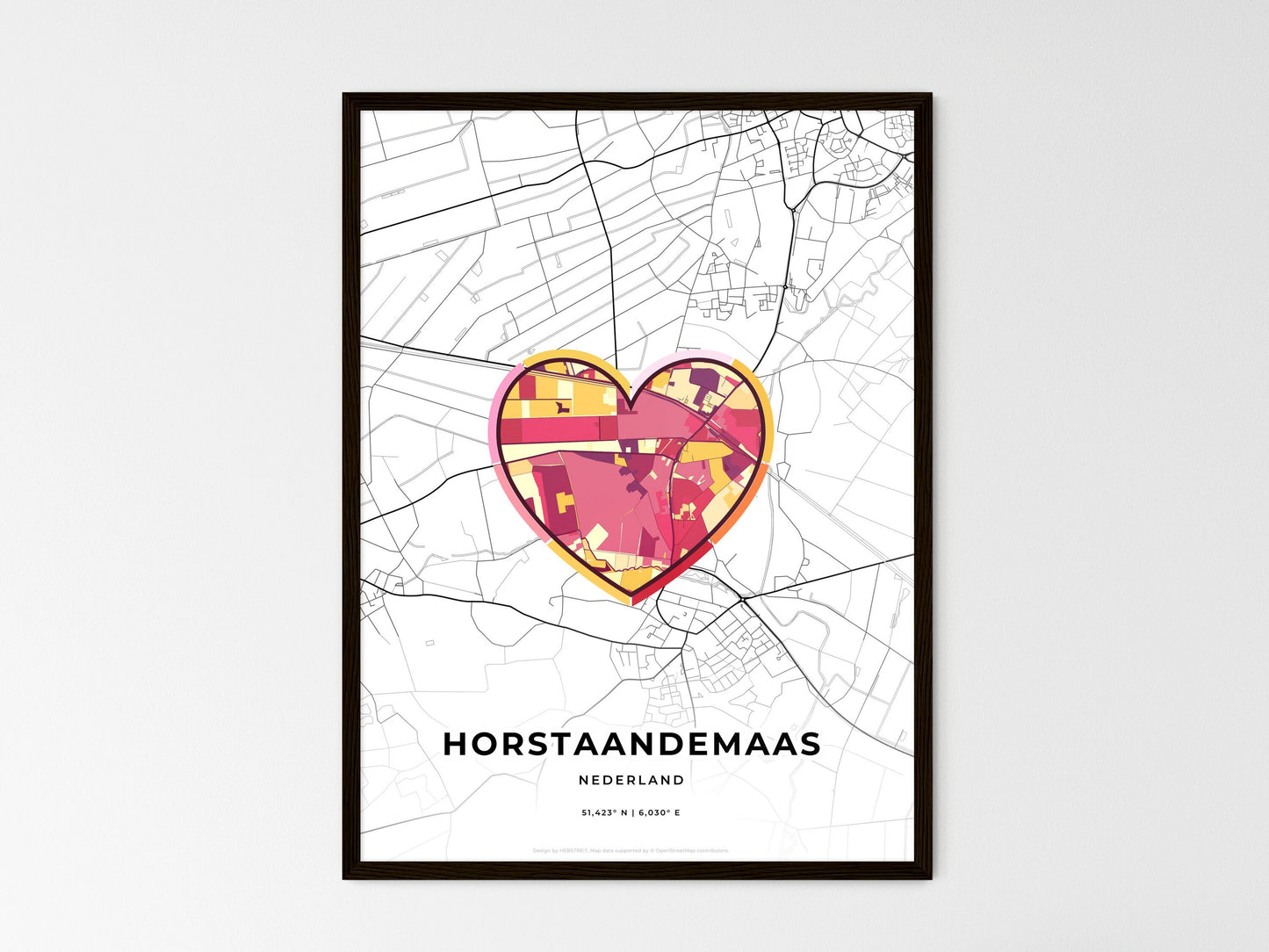 Nestled on the Maas River, the Dutch city of Horst aan de Maas boasts a rich artistic heritage. Its vibrant streets are adorned with colorful murals and sculptures, reflecting the town's commitment to creativity. The abstract illustration captured in this print showcases the city's eclectic blend of traditional architecture and modern art. From the iconic skyline to the charming canals, Horst aan de Maas offers a picturesque setting that has inspired countless artists and art enthusiasts alike. Whether it's for a thoughtful gift or a unique addition to your home decor, this minimal art map captures the essence of this vibrant Dutch city, where art and culture intertwine seamlessly.