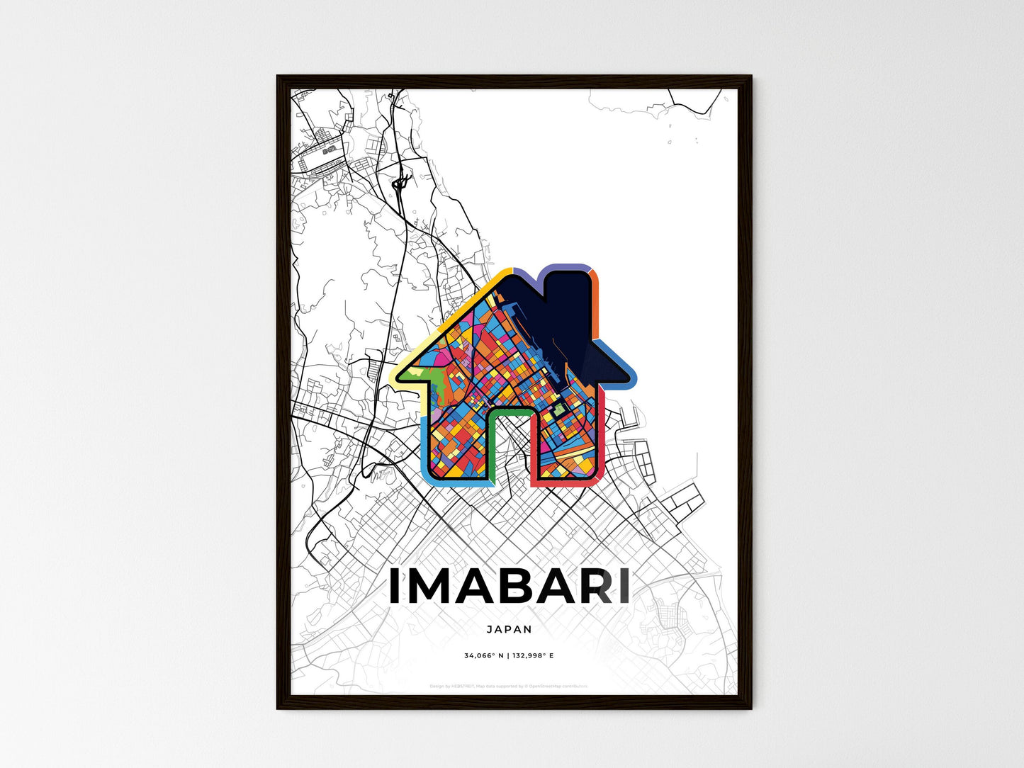 Our map of Imabari Japan shows minimalist designed roads, railroads and waterways combined with colorful urban areas within one icon.