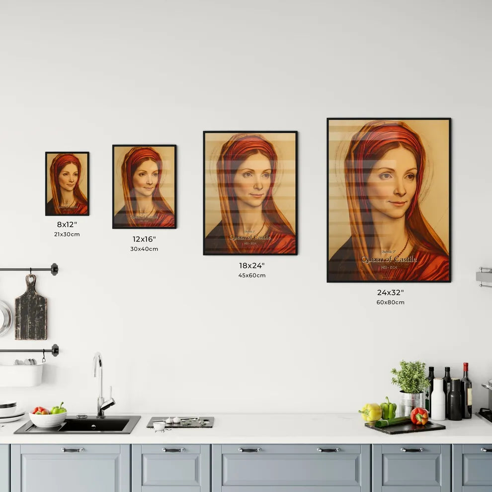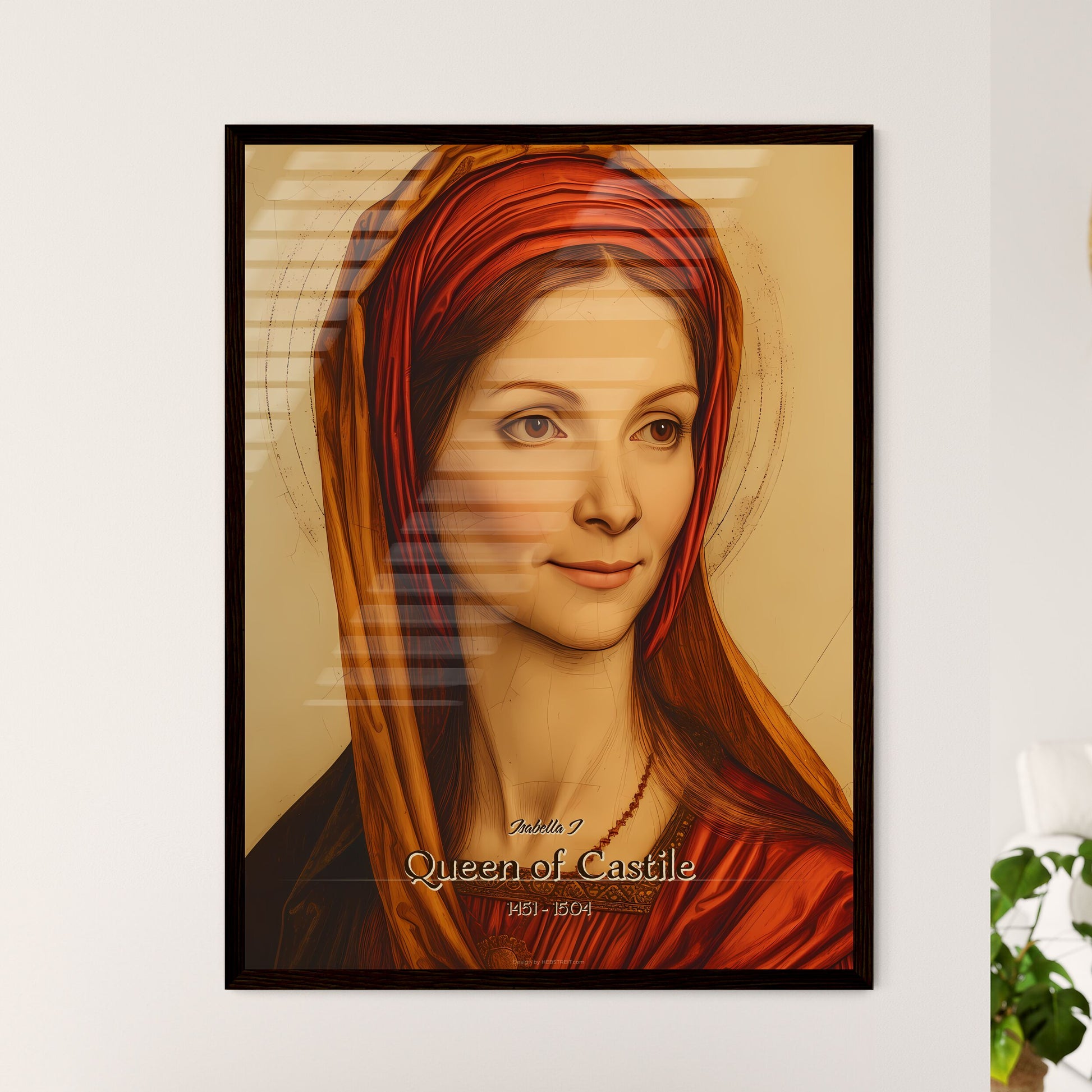 Isabella I, Queen of Castile, 1451 - 1504, A Poster of a painting of a woman with a red head wrap