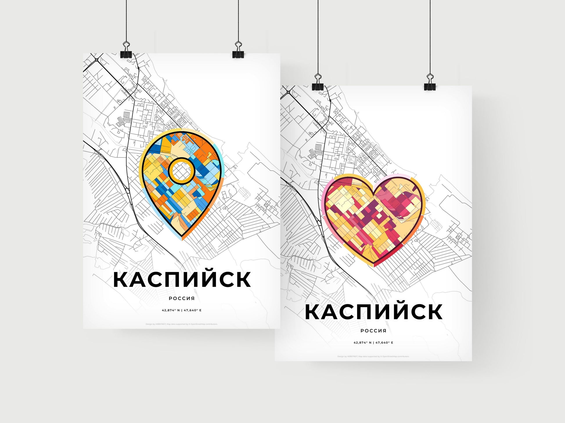 Our map of Каспийск Россия shows minimalist designed roads, railroads and waterways combined with colorful urban areas within one icon.