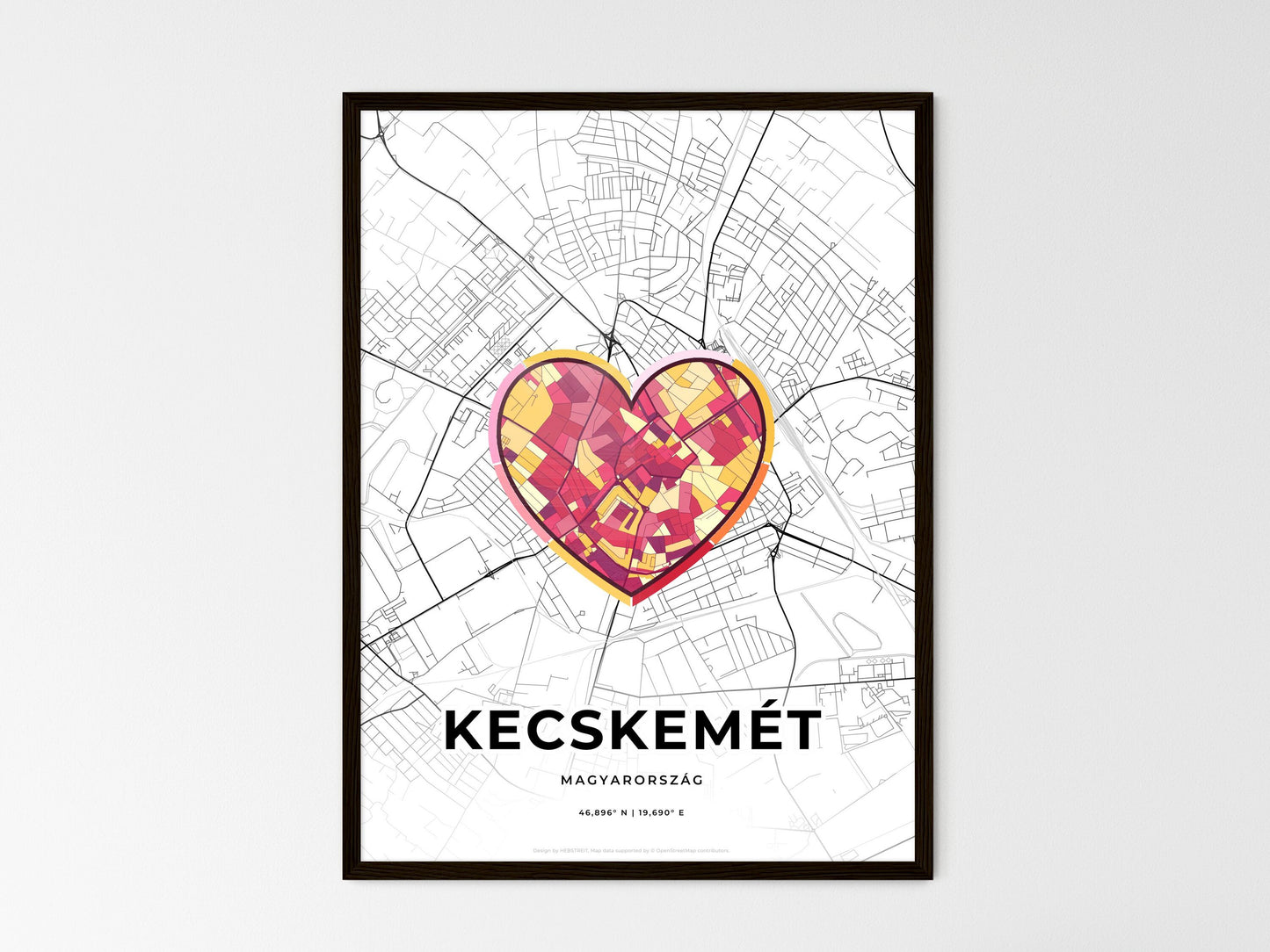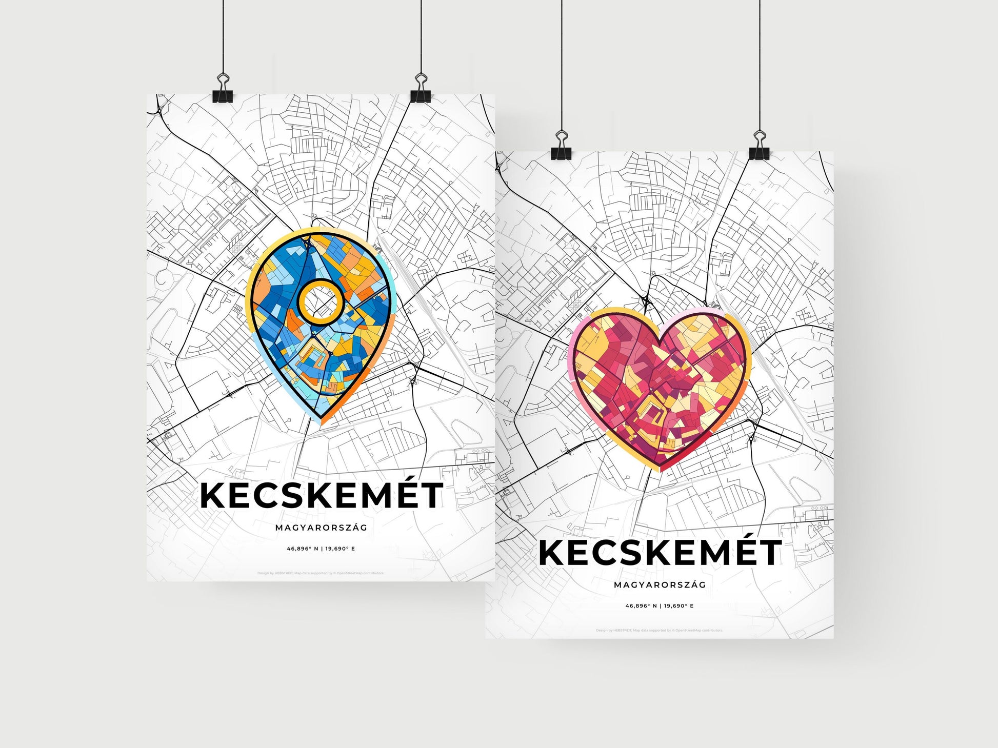Our map of Kecskemét Magyarország shows minimalist designed roads, railroads and waterways combined with colorful urban areas within one icon.