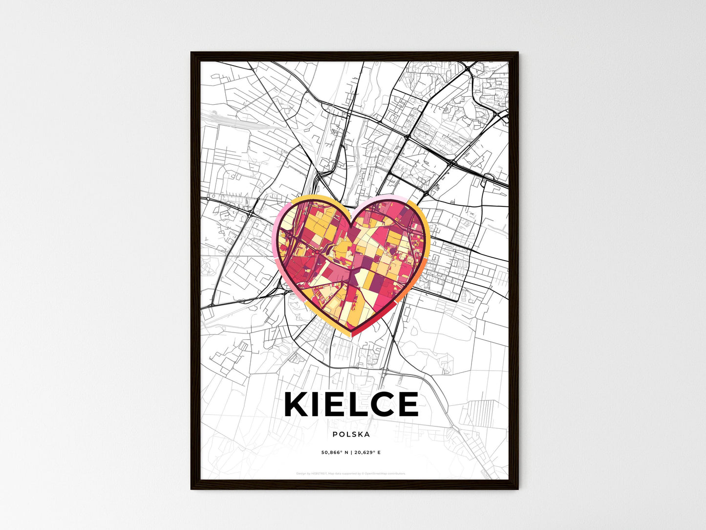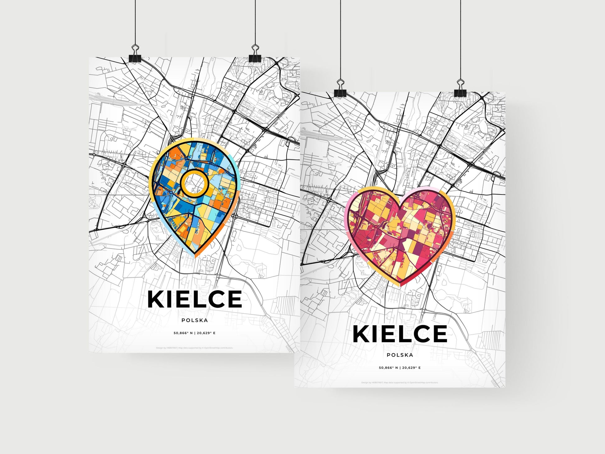 Our map of Kielce Polska shows minimalist designed roads, railroads and waterways combined with colorful urban areas within one icon.