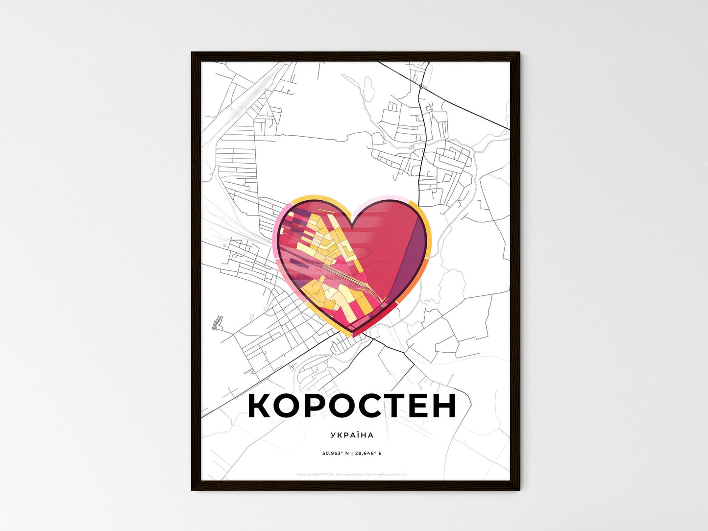Korosten Ukraine, minimal art map with a colorful icon