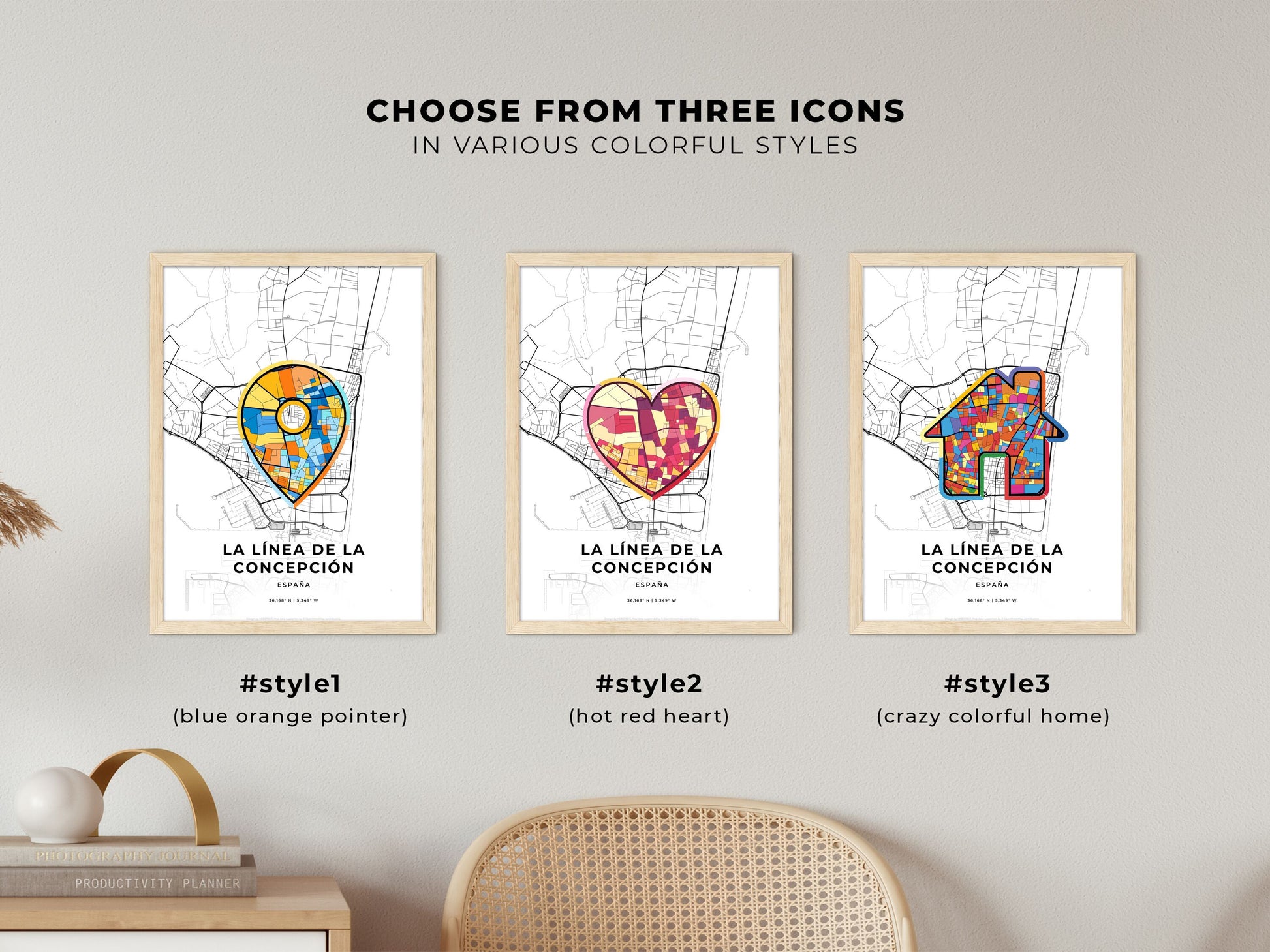 La Línea De La Concepción Spain, minimal art map with a colorful icon