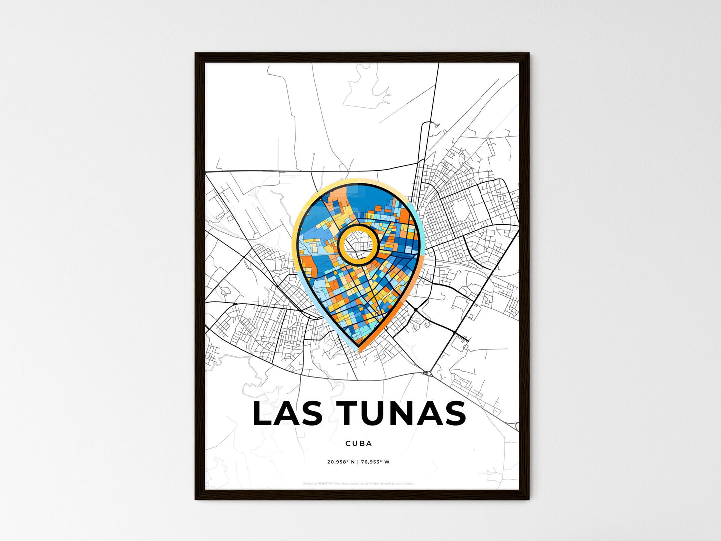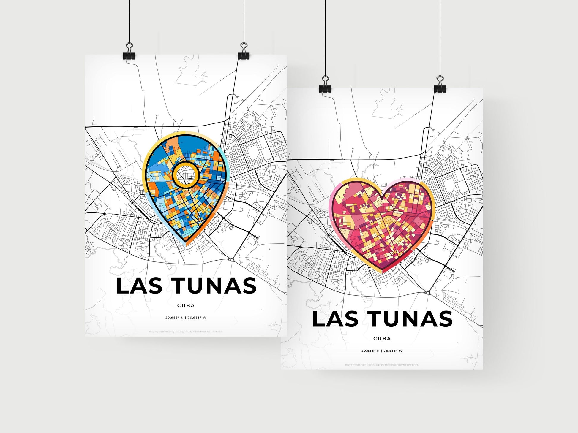 Our map of Las Tunas Cuba shows minimalist designed roads, railroads and waterways combined with colorful urban areas within one icon.