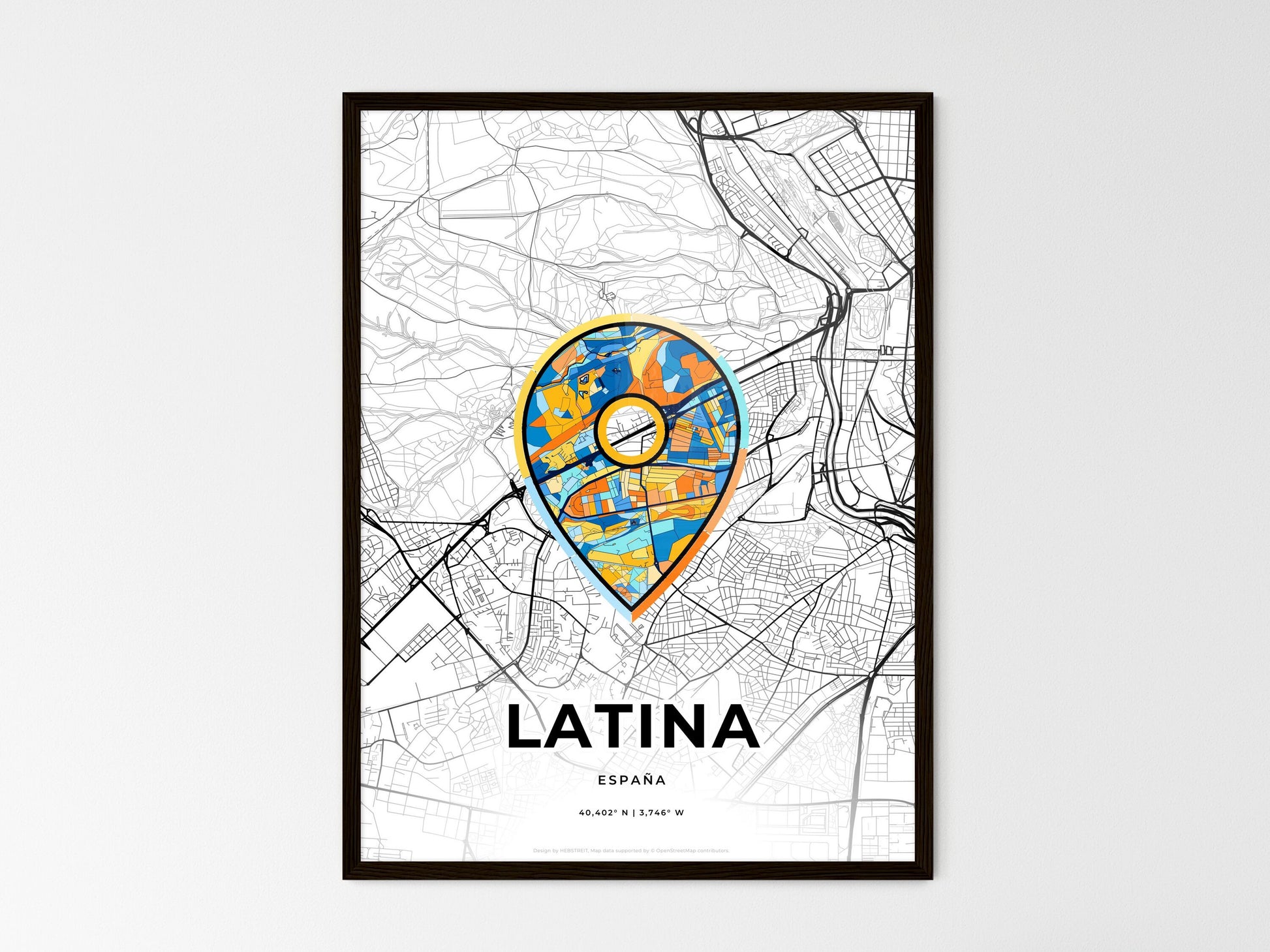 Step back in time with this captivating art map of the beautiful and vibrant city of Latina Spain. Known for its rich history and architectural marvels, the city is believed to be the birthplace of flamenco music and dance. Explore the abstract streets and colorful icons, revealing the essence of this enchanting destination. As a thoughtful gift or a stunning addition to your home decor, this print captures the soul of Latina Spain, inviting you to immerse yourself in its allure and discover its captivating story.