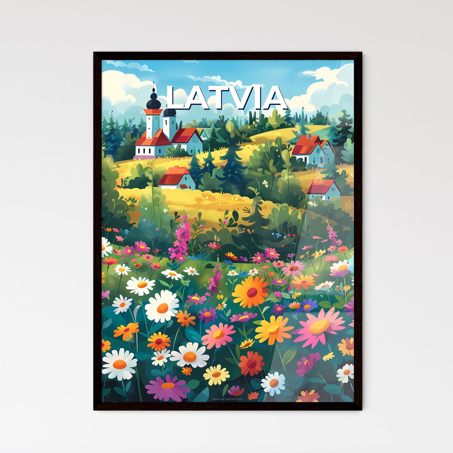 Embark on a vibrant journey to the heart of Europe with this captivating print. It transports you to picturesque Latvia, where a field of flowers explodes in a symphony of colors beneath an azure sky. Amidst the floral tapestry, quaint houses line cobblestone streets, hinting at a rich heritage. Stroll through Riga Old Town, where medieval architecture and modern marvels intertwine, or venture beyond to Sigulda, where lush forests and cascading waterfalls invite exploration. This artwork captures the essence of Latvia's natural beauty and architectural charm, promising a glimpse into a land where vibrant traditions and stunning landscapes coexist.
