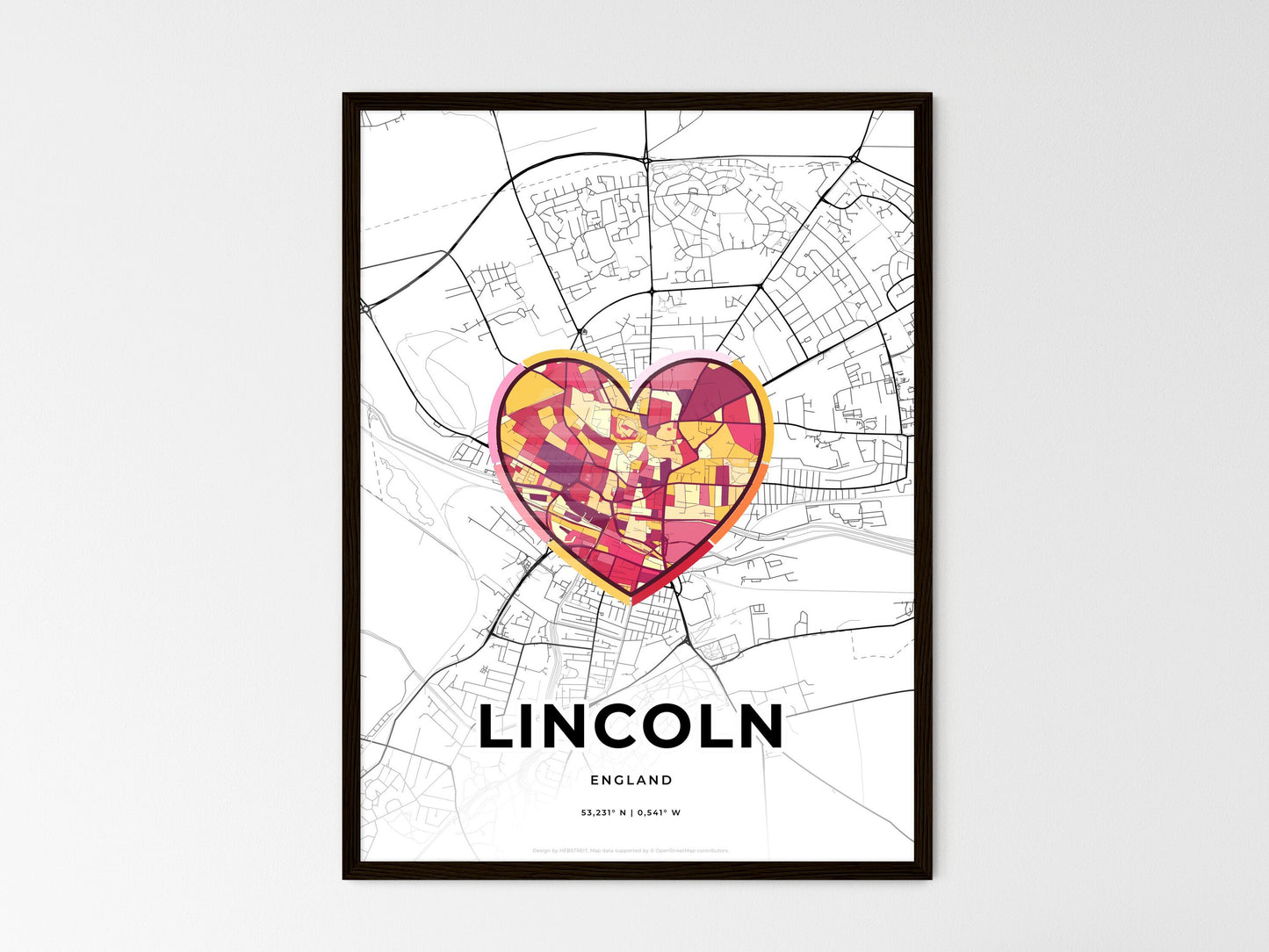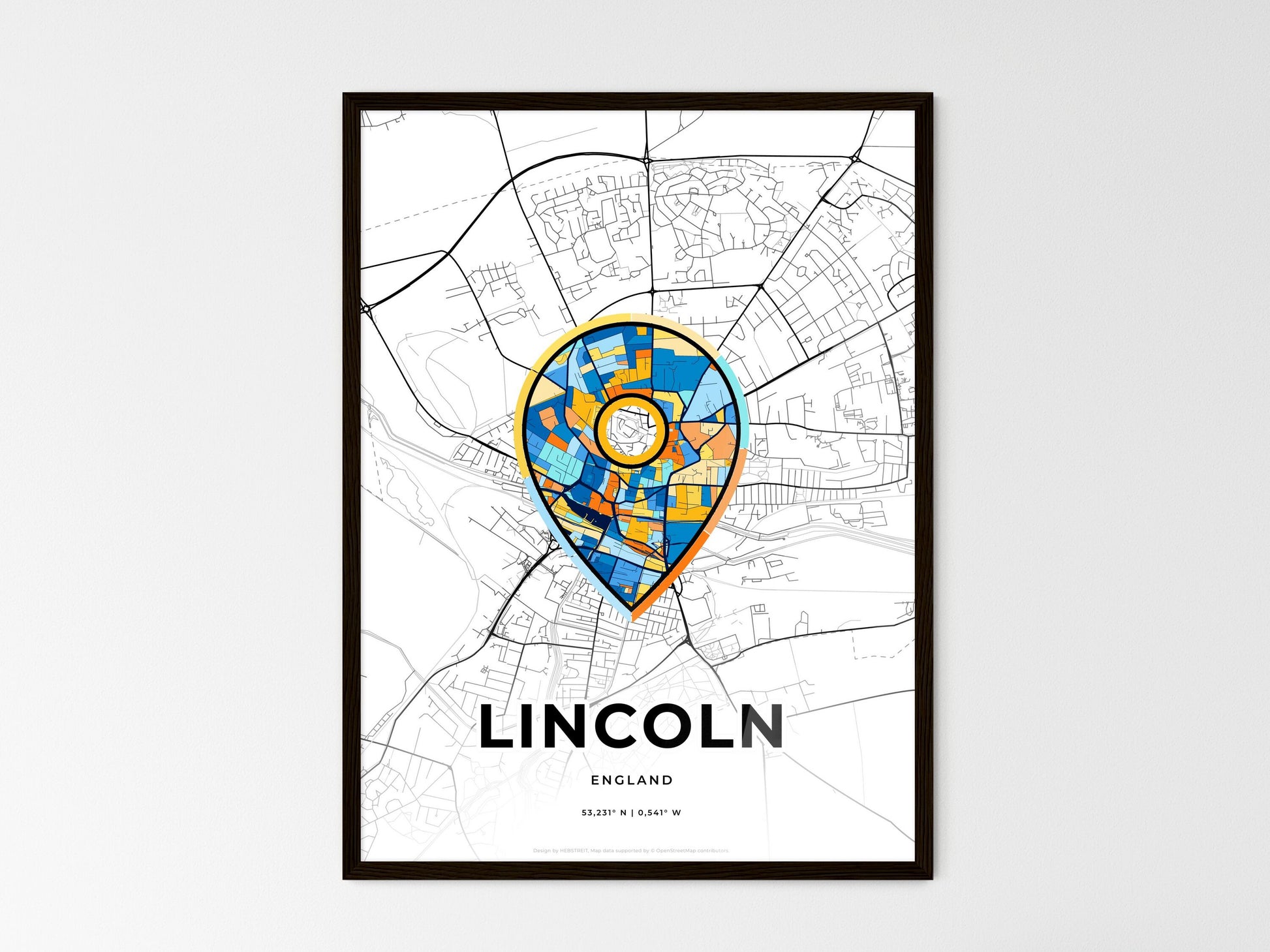Lincoln England, minimal art map with a colorful icon