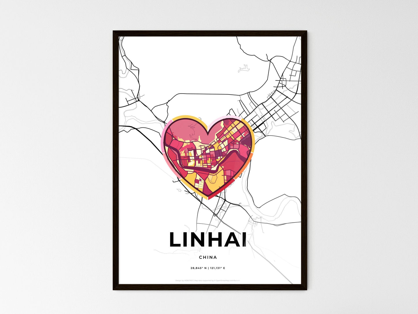 Linhai China, minimal art map with a colorful icon