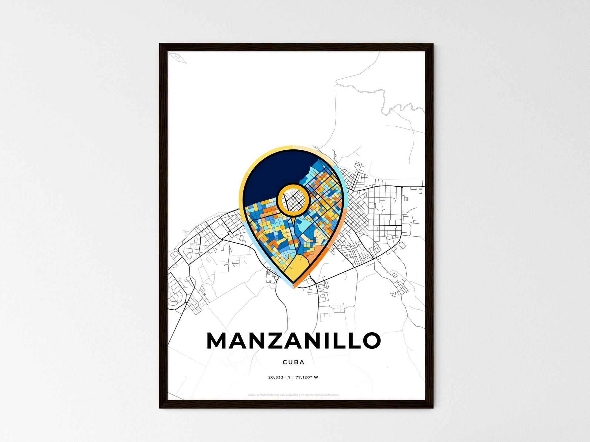 Discover the captivating history of Manzanillo, Cuba with this artistic masterpiece. Manzanillo holds the distinct honor of being the landing spot of Christopher Columbus upon his arrival in the Americas in 1492. This vibrant city bears witness to the rich cultural tapestry woven by indigenous Taino people and Spanish colonizers. Today, Manzanillo serves as a vibrant port city, bustling with energy and brimming with cultural heritage. Immerse yourself in the charm of this historical gem through this captivating city map, a testament to the enduring spirit of Manzanillo, Cuba.