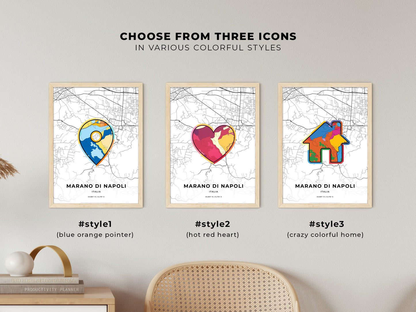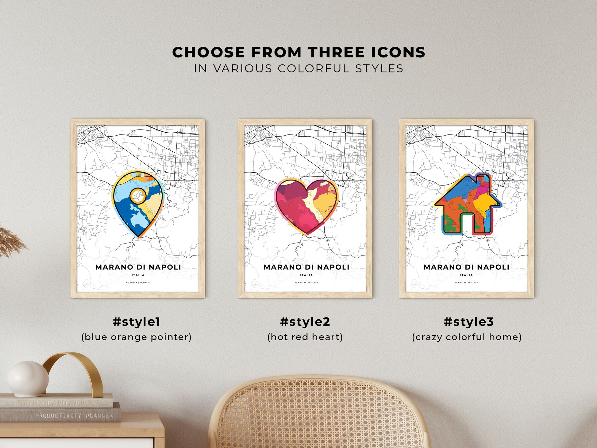 Marano Di Napoli Italy, minimal art map with a colorful icon