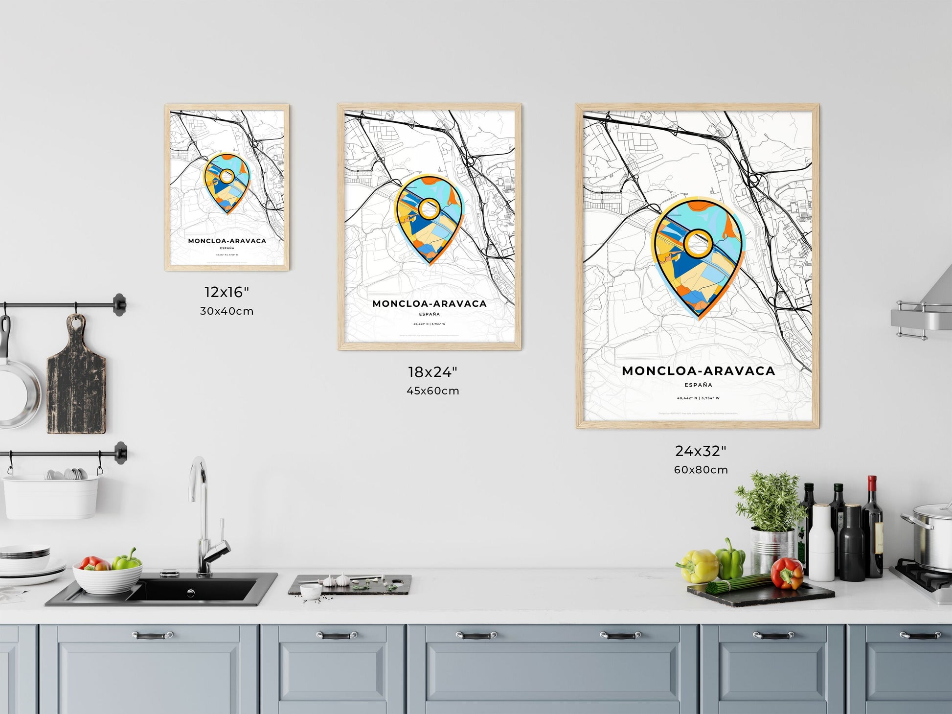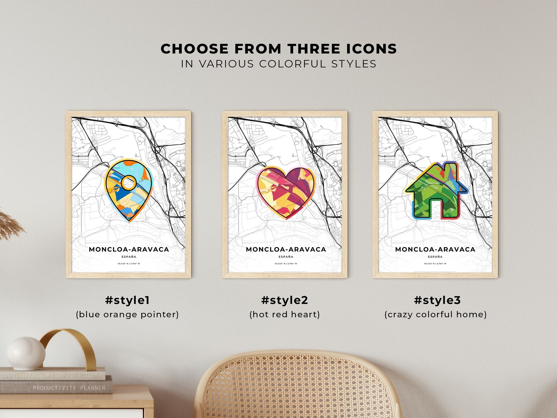 Moncloa-Aravaca Spain, minimal art map with a colorful icon