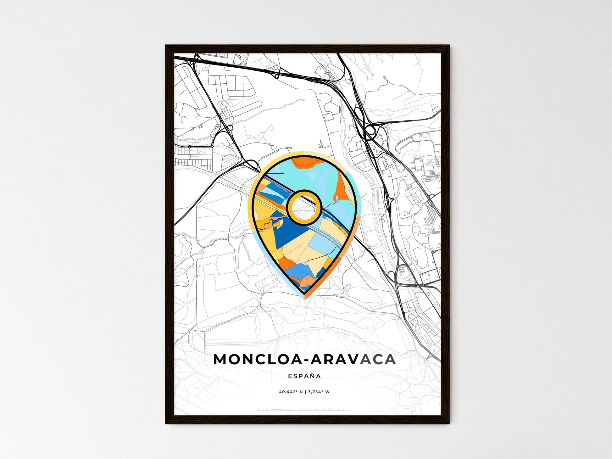 Immerse yourself in the vibrant spirit of Moncloa-Arava, Spain, with this captivating abstract map print. This unique artwork captures the essence of the city, transforming it into a symphony of colors and shapes. At the heart of the print, a vibrant icon symbolizes the starting point of a special journey. Whether it's a testament to a couples' origin or a cherished memory, this piece invites you to navigate the streets and discover the hidden gems that make Moncloa-Arava a captivating destination.