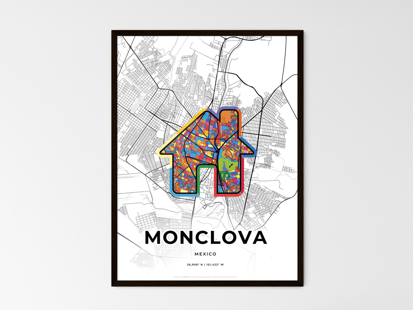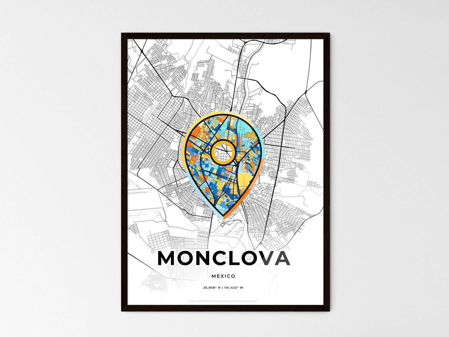 Discover the vibrant spirit of Monclova, Mexico, through this minimal art print. Nestled in the heart of the country, Monclova holds a rich history. Once a bustling mining town, it now thrives as a modern industrial hub while preserving its cultural heritage. This map showcases the city's essence, capturing the essence of its vibrant streets and iconic landmarks. The colorful icon symbolizes the city's enduring spirit and its role as a birthplace of countless stories and experiences. Whether you have a special connection to Monclova or simply appreciate its beauty, this print invites you to explore the city's unique charm and heritage.