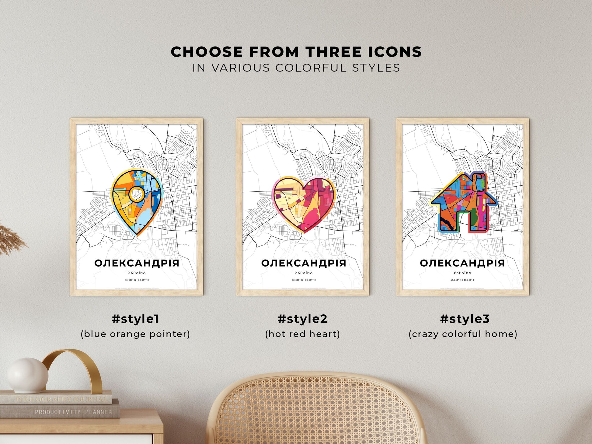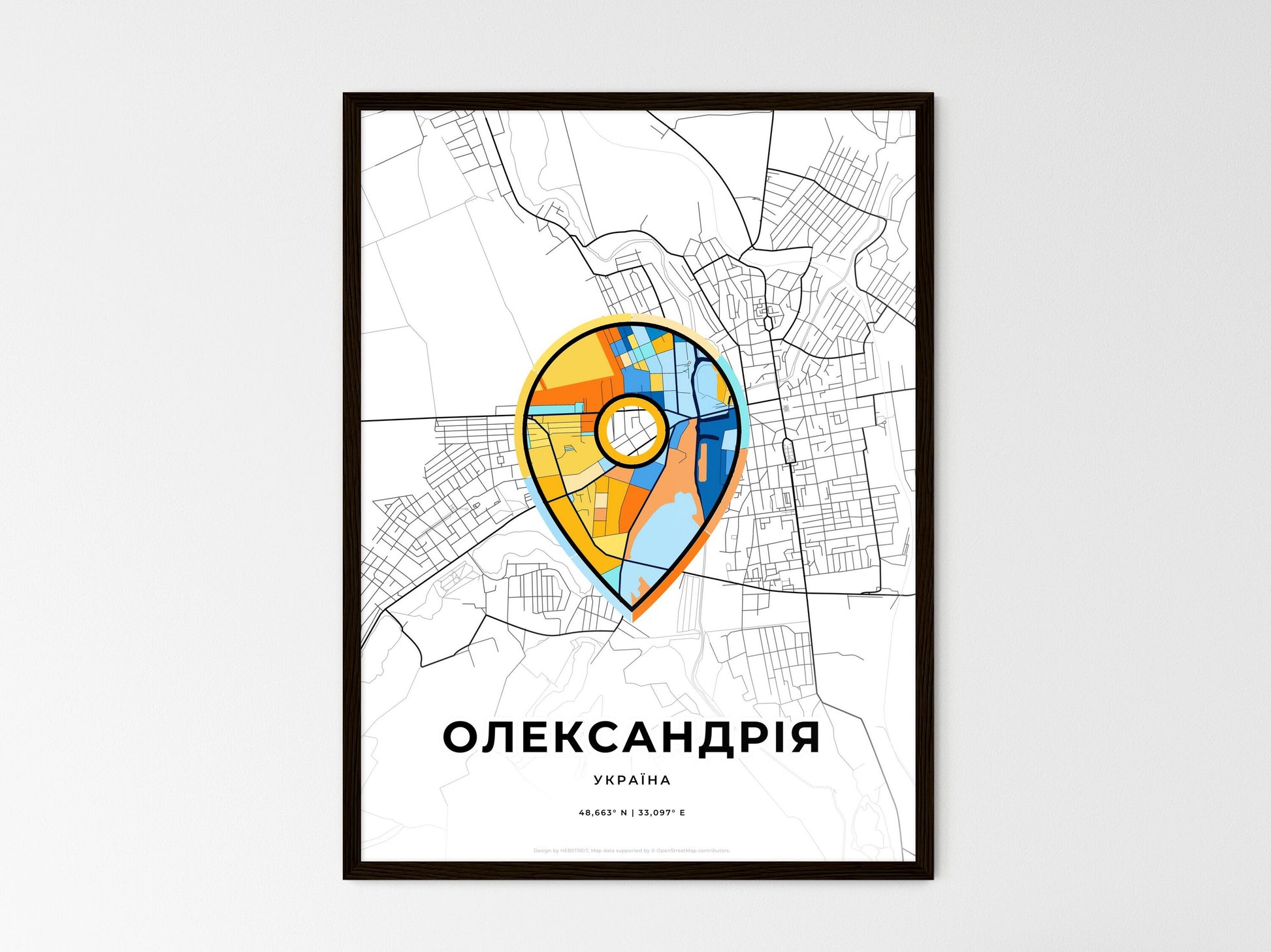 Oleksandriia Ukraine, minimal art map with a colorful icon