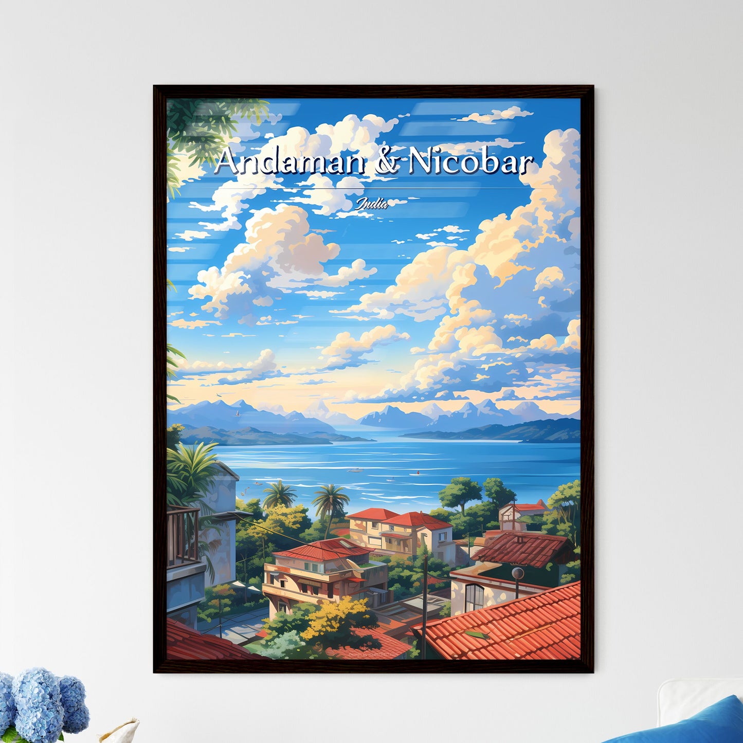 Introducing A Poster of On The Roof Of The Andaman & Nicobar Islands, India - A View Of A Town With A Body Of Water And Mountains our premium ART Print that captures the playful spirit and vivid imagination of modern art. This eye-catching series features a trio of vibrant and prints and characters, each one created with a bold and expressive palette that is sure to bring a burst of color and energy to any room.