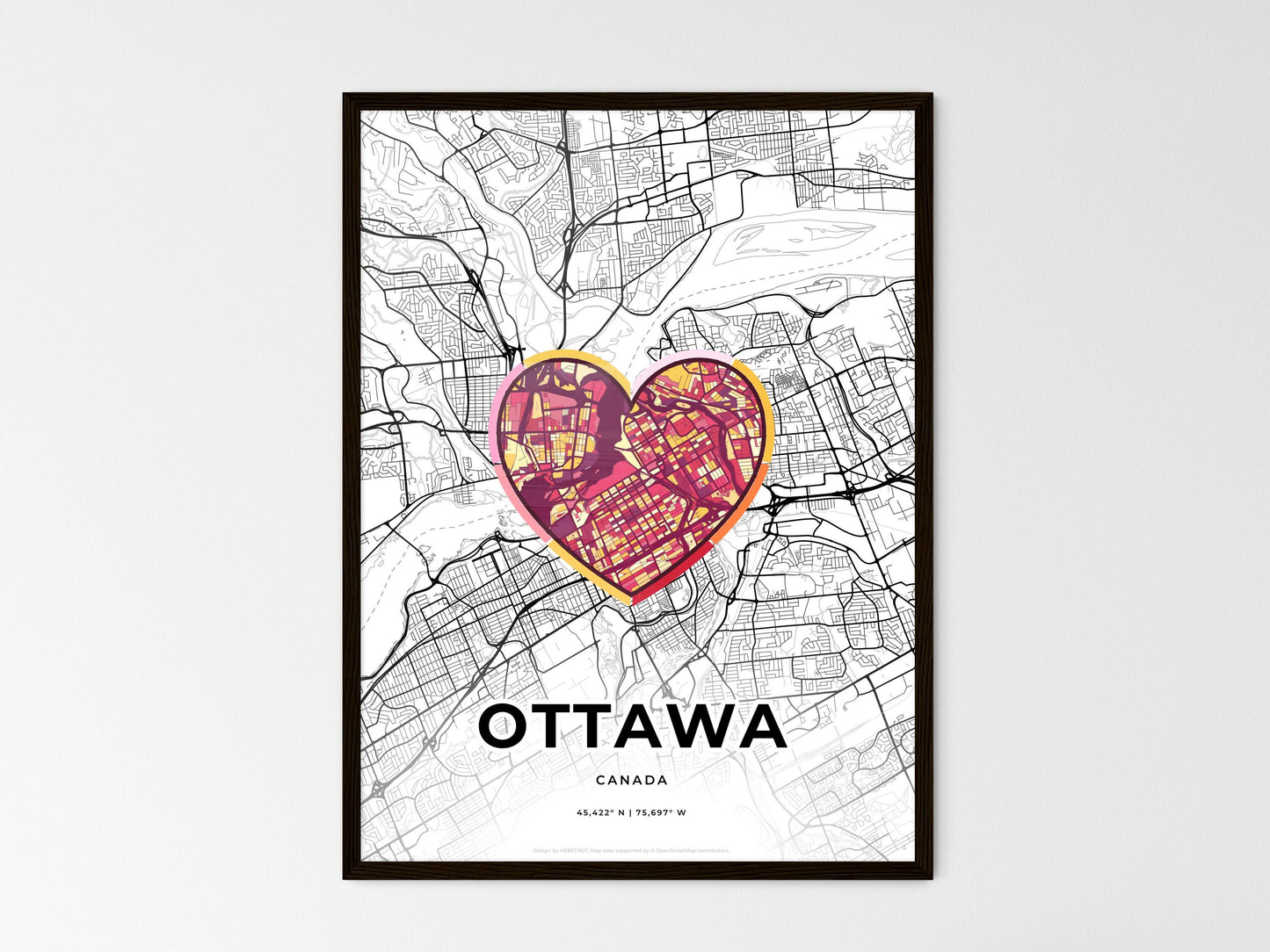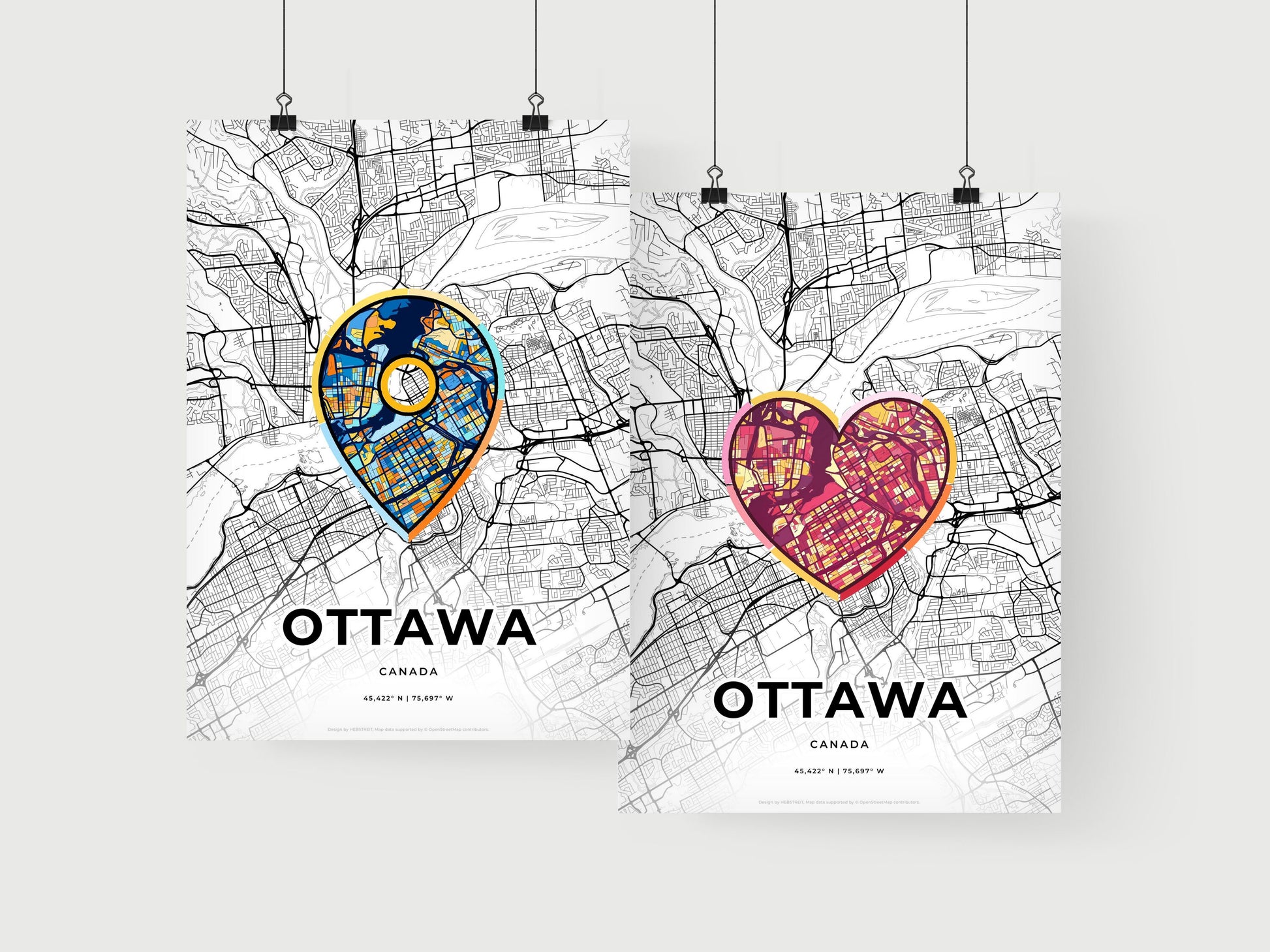 Our map of Ottawa Canada shows minimalist designed roads, railroads and waterways combined with colorful urban areas within one icon.