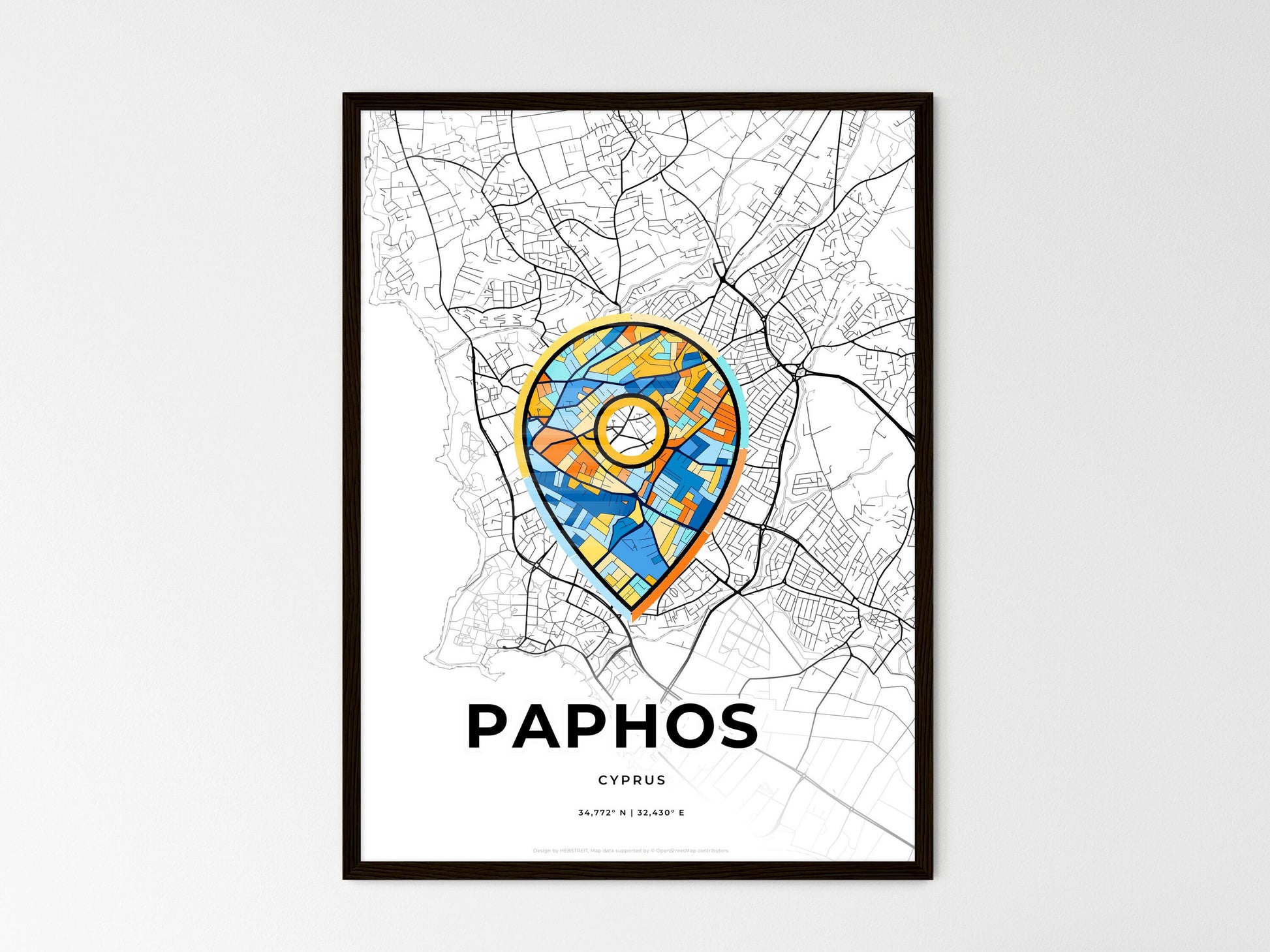 Journey to the birthplace of myth and legend with our stunning abstract map of Paphos, Cyprus. This vibrant artwork captures the essence of this ancient city, where the goddess Aphrodite emerged from the foam and where myths have been spun for centuries. Immerse yourself in the colorful iconography, inspired by the city's rich history and natural beauty. Whether you're a local or a traveler yearning for a piece of Cypriot culture, this map will transport you to the heart of Paphos, where art and legend intertwine to create a vibrant tapestry of history and imagination.