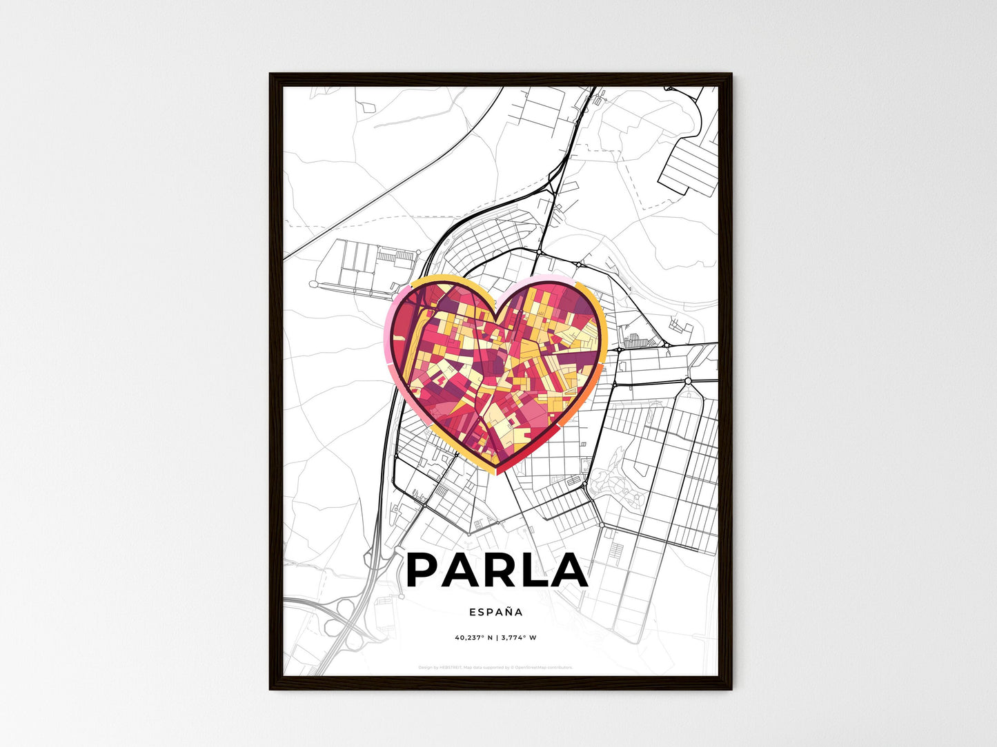 Our map of Parla España shows minimalist designed roads, railroads and waterways combined with colorful urban areas within one icon.
