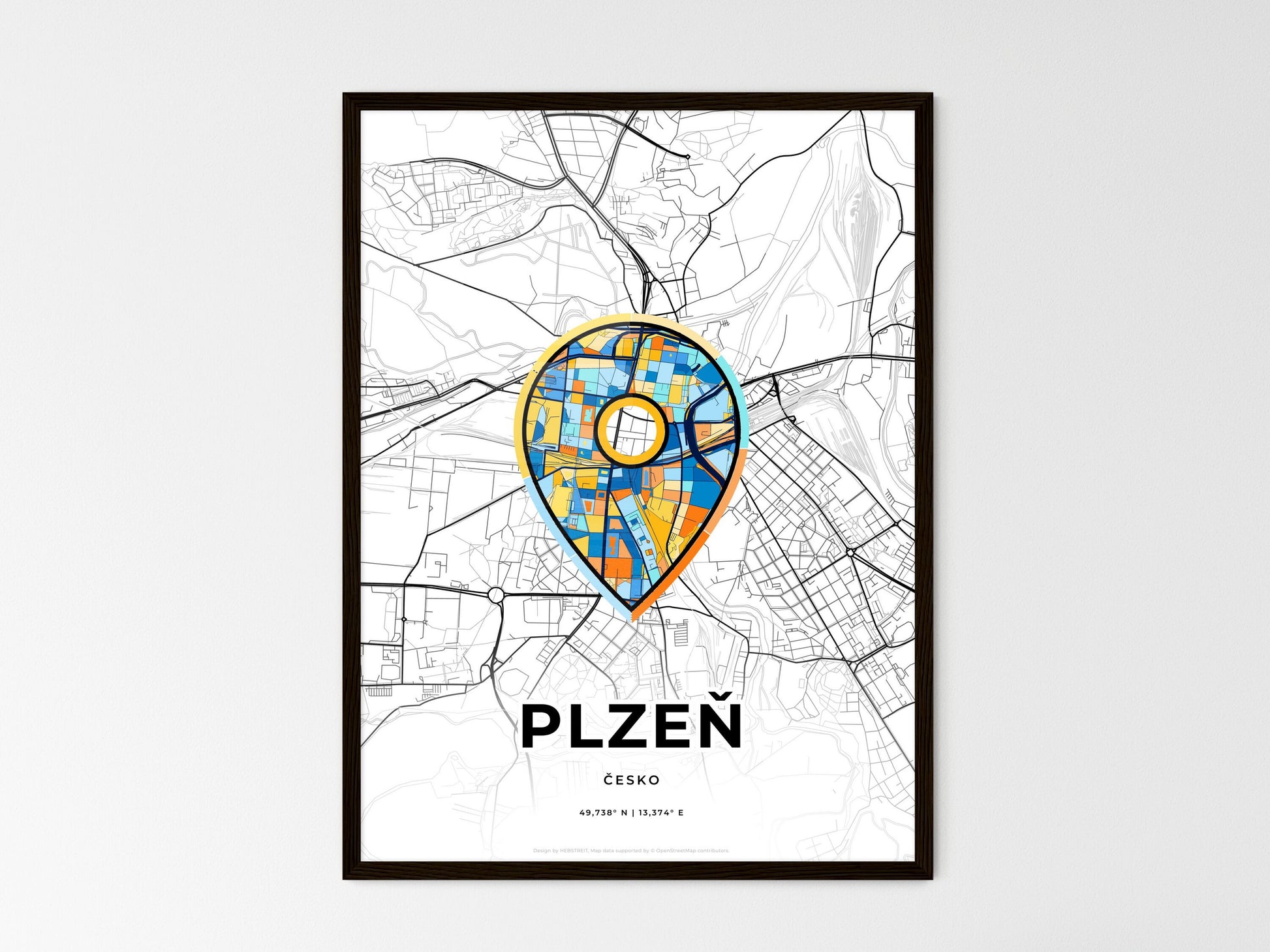Our map of Plzeň Česko shows minimalist designed roads, railroads and waterways combined with colorful urban areas within one icon.