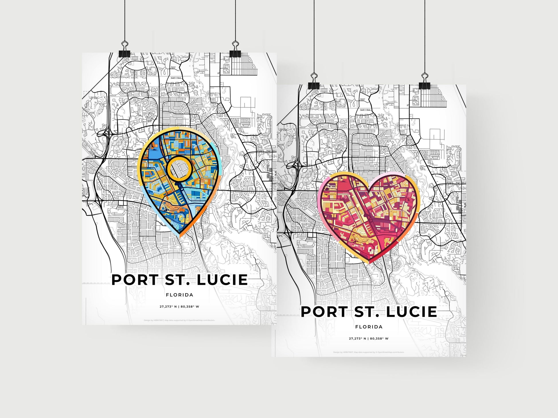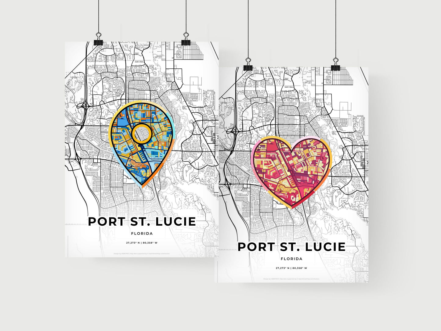 Port St. Lucie Florida, minimal art map with a colorful icon