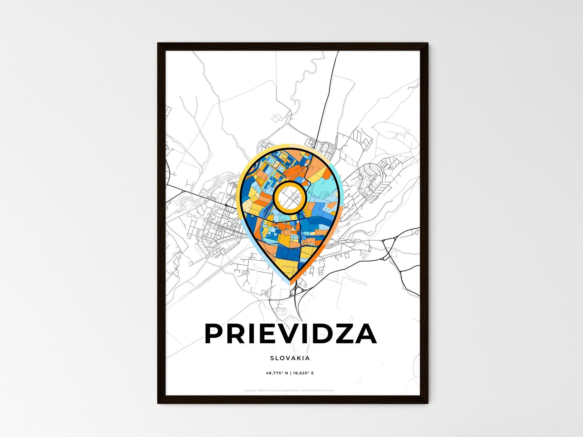 Our map of Prievidza Slovakia shows minimalist designed roads, railroads and waterways combined with colorful urban areas within one icon.