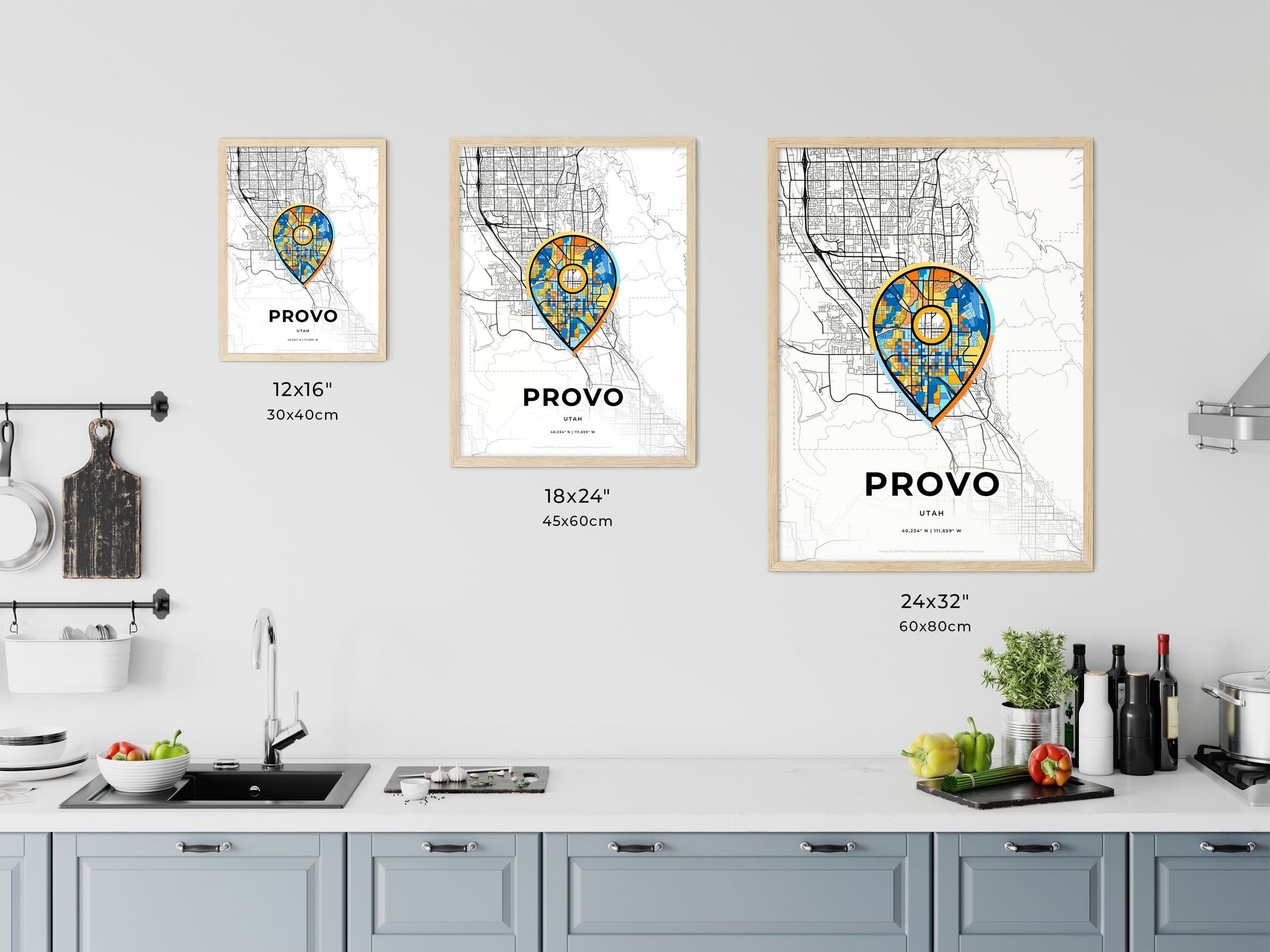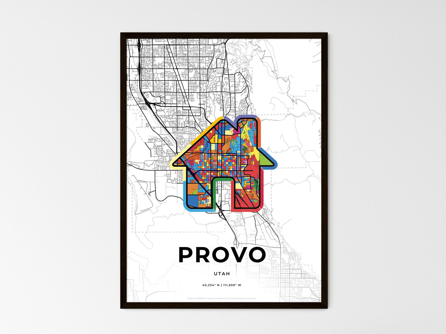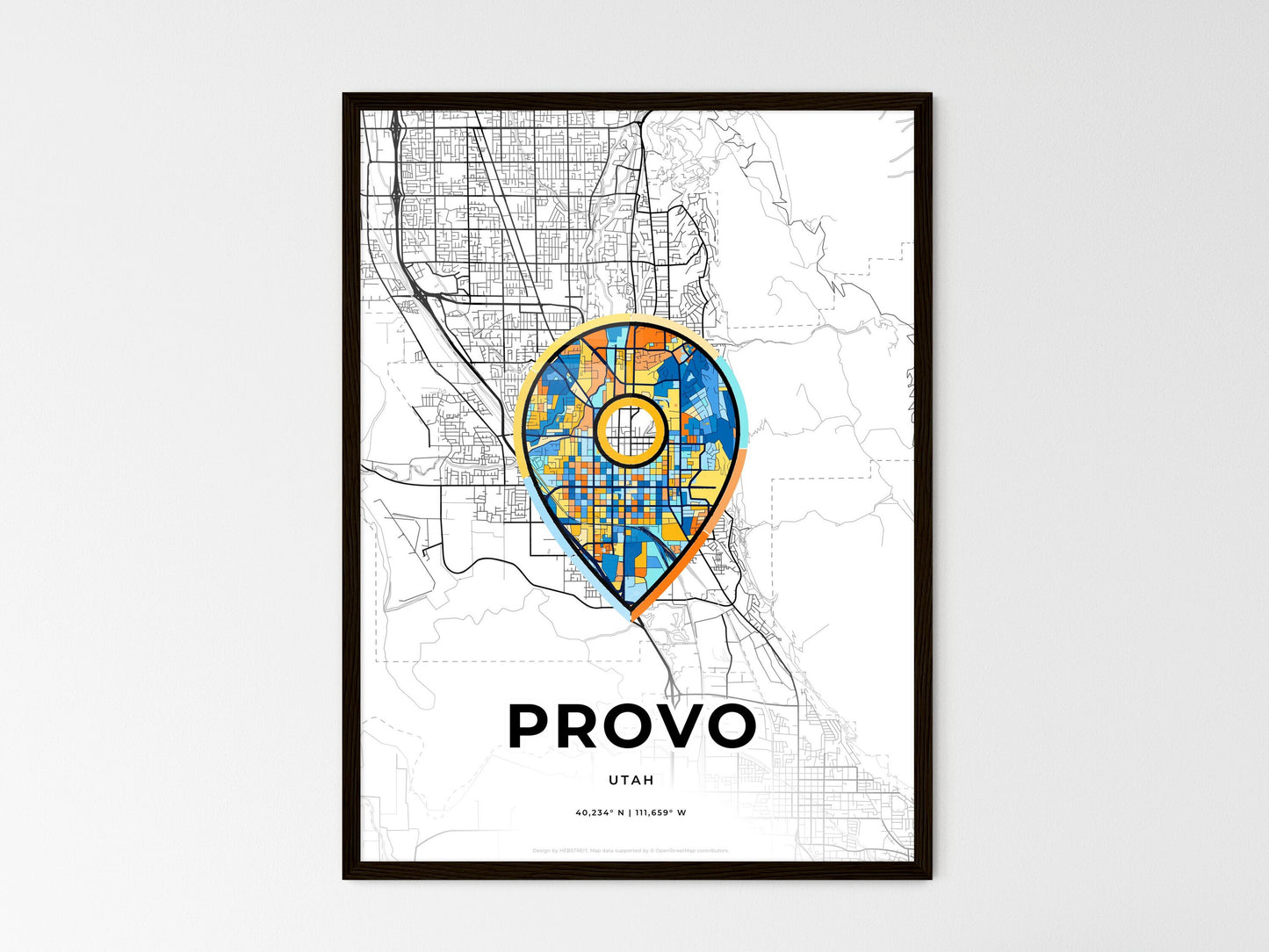 Provo Utah, minimal art map with a colorful icon
