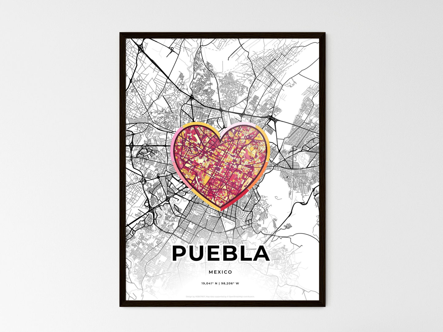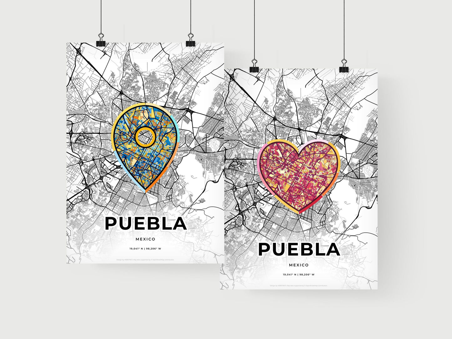 Welcome to Puebla, Mexico, a vibrant city steeped in history and cultural richness. Trace the city's origins with this captivating art map print, showcasing the essence of Puebla through its iconic landmarks and vibrant colors. Puebla has been a melting pot of cultures since its founding in 1531, blending indigenous and Spanish influences to create a unique and captivating urban tapestry. Wander through its charming cobblestone streets, marvel at the Baroque architecture of the historic center, and savor the flavors of traditional mole poblano. Whether it's for a special gift or a treasured addition to your home decor, this art map invites you to explore the heart and soul of Puebla, Mexico.
