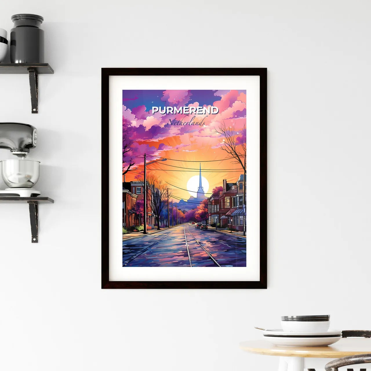 Immerse yourself in the picturesque charm of Purmerend, Netherlands, captured in this vibrant and captivating poster. This stunning illustration transports you to a bustling street lined with quaint buildings and verdant trees. As the golden hues of sunset bathe the scene, a magical atmosphere unfolds. The graphic style accentuates the beauty of the architecture and the vibrant foliage, inviting you to linger and soak in the ambiance. Whether you're a seasoned traveler longing to relive cherished memories or an aspiring explorer seeking inspiration, this poster encapsulates the allure of Purmerend, promising to grace any home interior with its vibrant and evocative beauty.