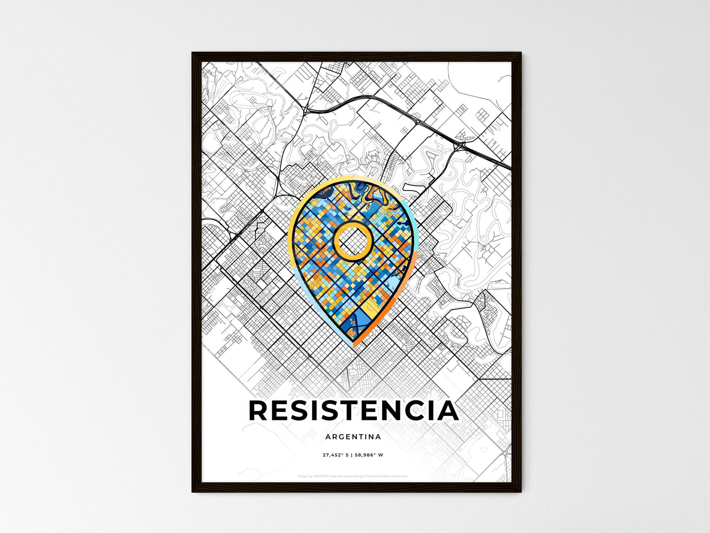 Resistencia Argentina, minimal art map with a colorful icon