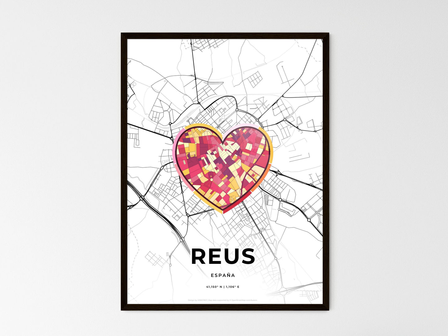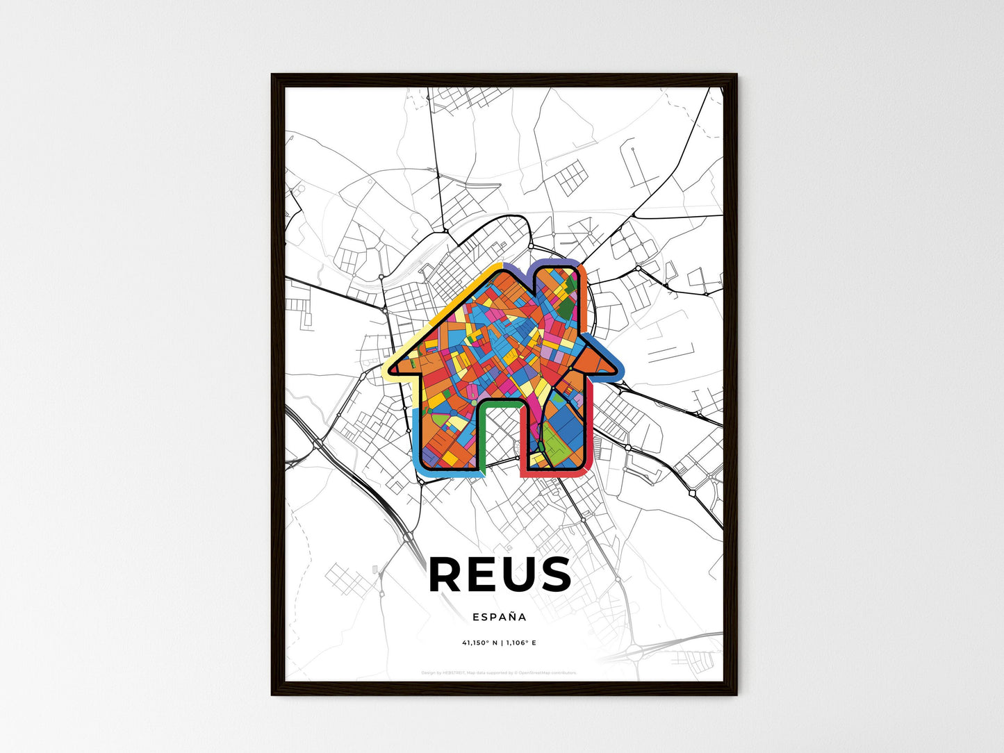 Immerse yourself in the vibrant spirit of Reus, Spain, with our captivating minimal art map print. This unique design captures the essence of the city through a colorful iconography, merging art and cartography seamlessly. As the birthplace of renowned architect Antoni Gaudí, Reus proudly showcases a blend of architectural marvels and a rich cultural heritage. Explore the narrow cobblestone streets lined with charming cafes, admire the stunning frescoes adorning the walls of the city's churches, and delve into the fascinating history preserved in its museums and monuments. This abstract map not only serves as a captivating home decor piece but also stands as a testament to the captivating allure of Reus, a city where art and history intertwine harmoniously.
