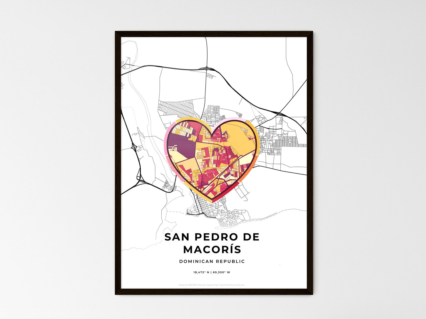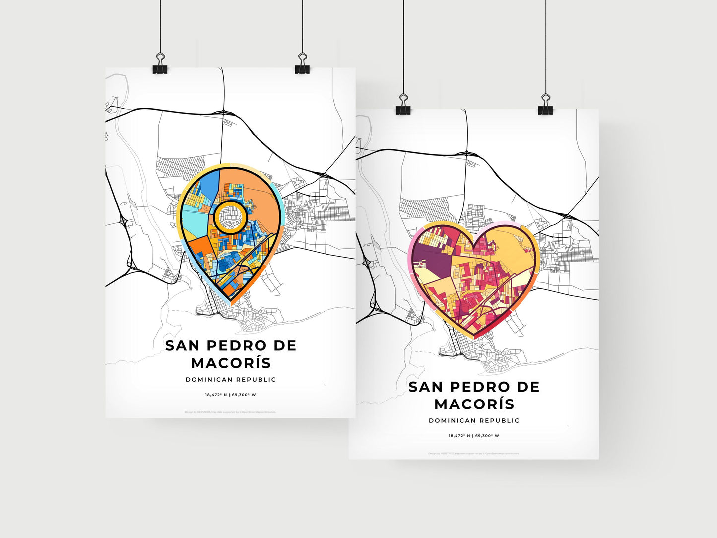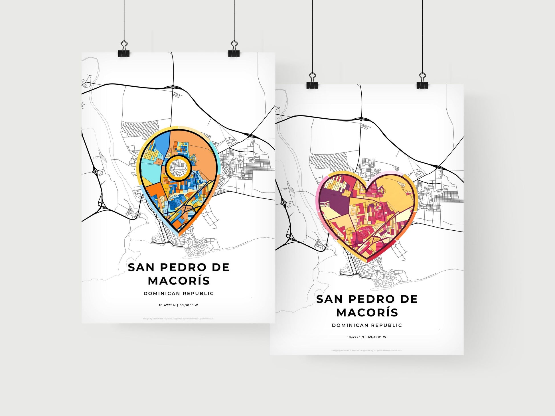 San Pedro de Macorís, a vibrant city located in the Dominican Republic, is known for its rich history and captivating culture. This coastal town has played a significant role in the country's sugar industry, leaving a lasting legacy in its architectural heritage. Explore the city through this minimalist art map, where iconic landmarks and a colorful palette capture the essence of its unique identity. Whether you're a resident with a deep connection to the city or a visitor seeking a glimpse into its captivating spirit, this print offers an artistic tribute to San Pedro de Macorís. Allow its abstract illustration to ignite your imagination and transport you to the heart of this captivating Dominican city.
